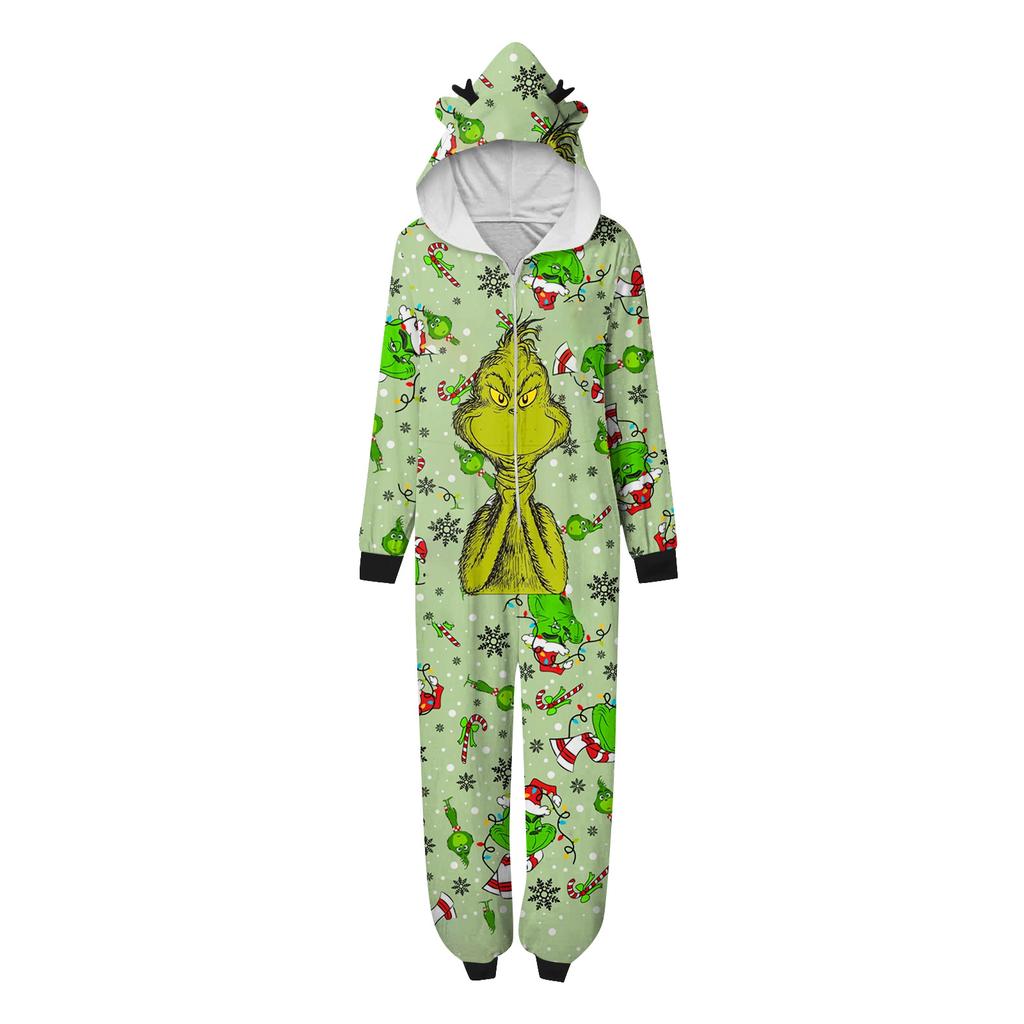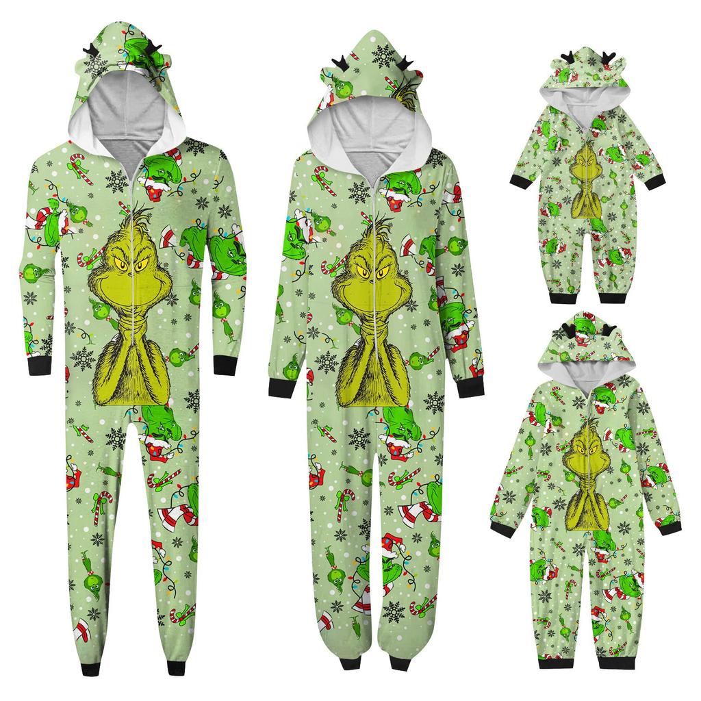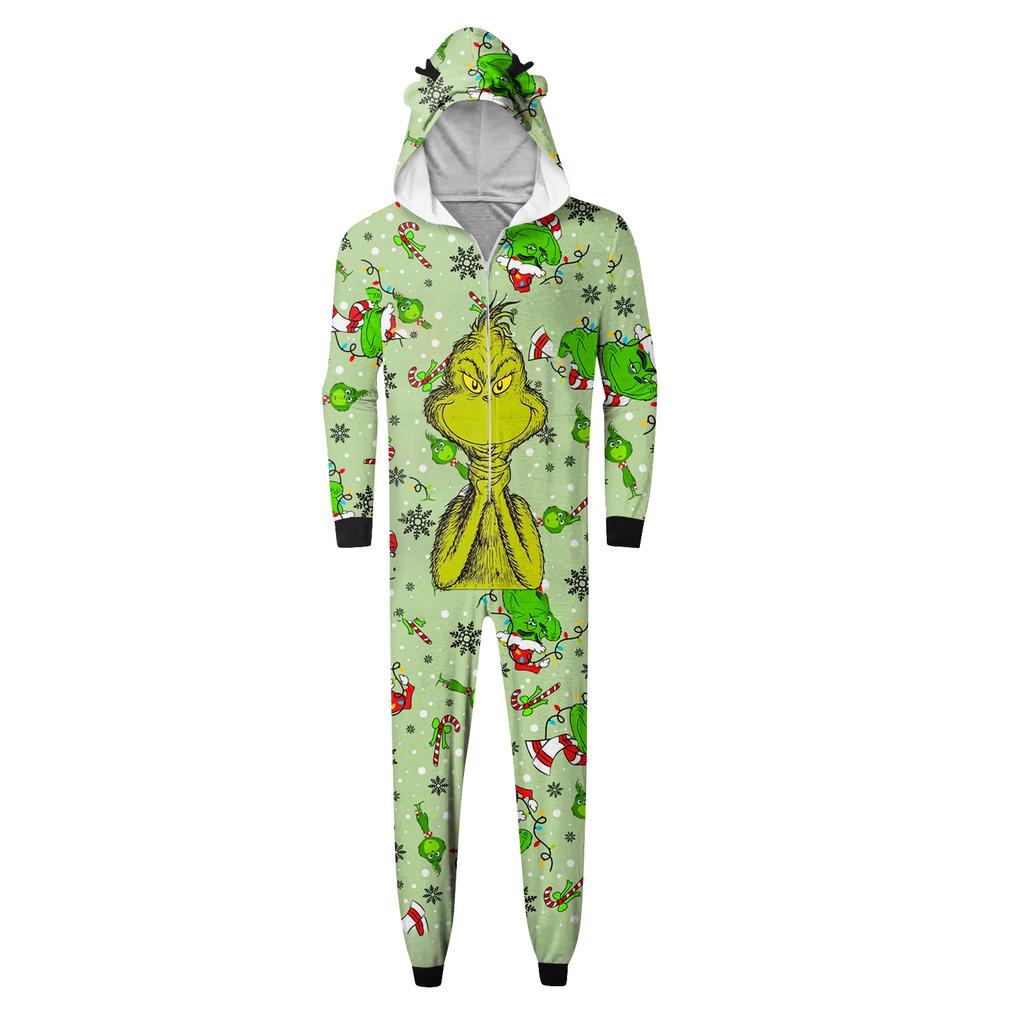 Комплект комбинезона на молнии с капюшоном и длинными рукавами для всей семьи с рождественским принтом