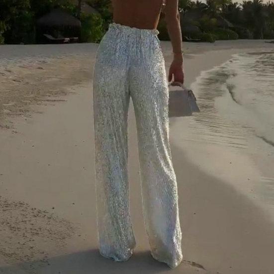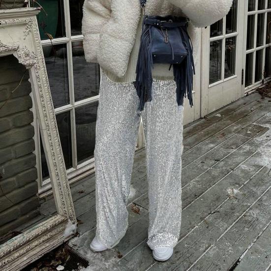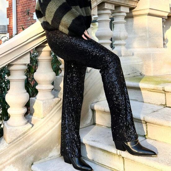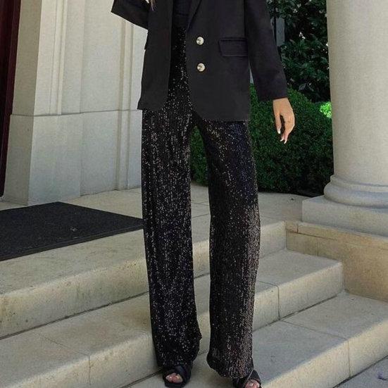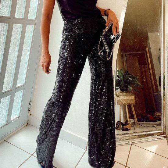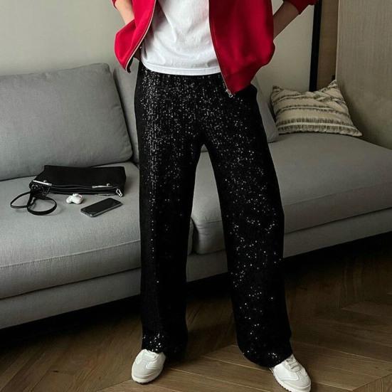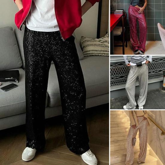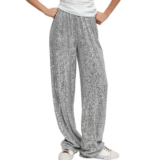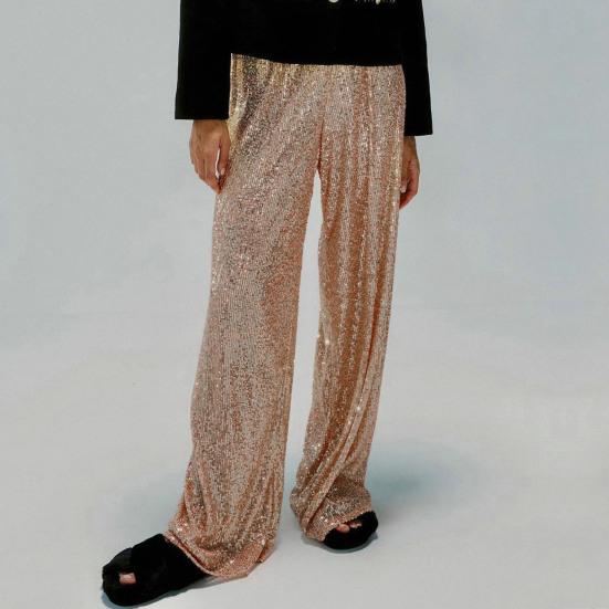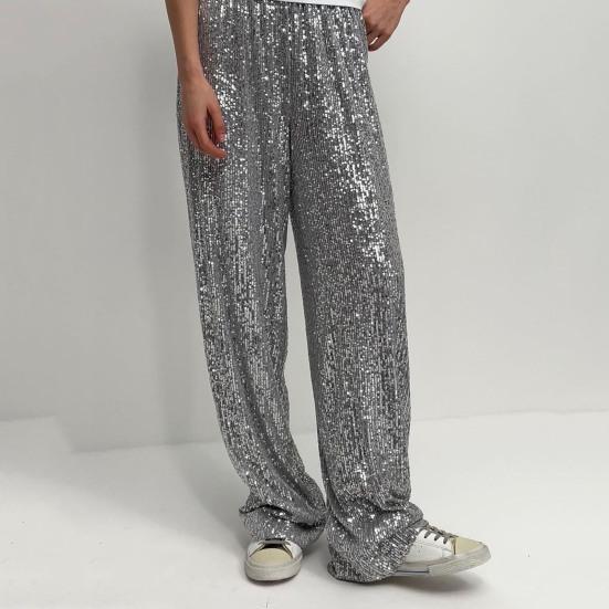 Характеристики: Эластичный пояс, пайетки, широкие штанины