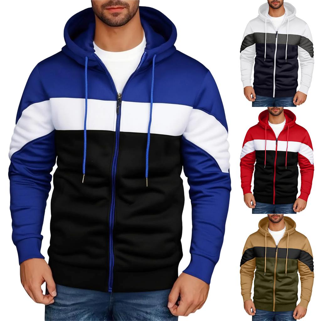 Мужская толстовка с капюшоном, толстовка контрастного цвета, спортивная повседневная куртка
