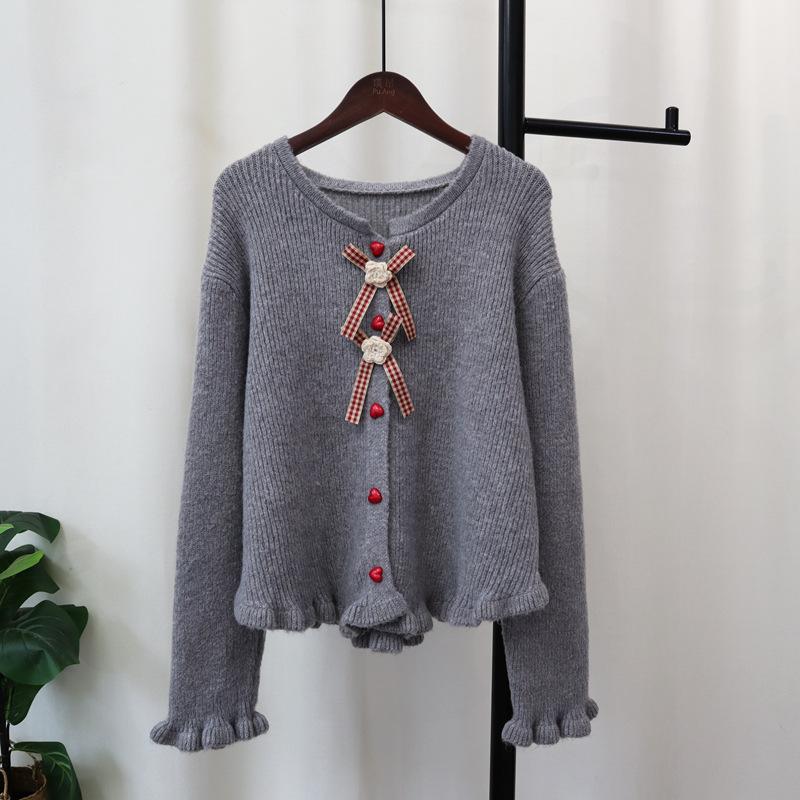Осень и зима новый трехмерный цветочный вязаный кардиган дизайн мягкий восковой милый темперамент свитер куртка женская