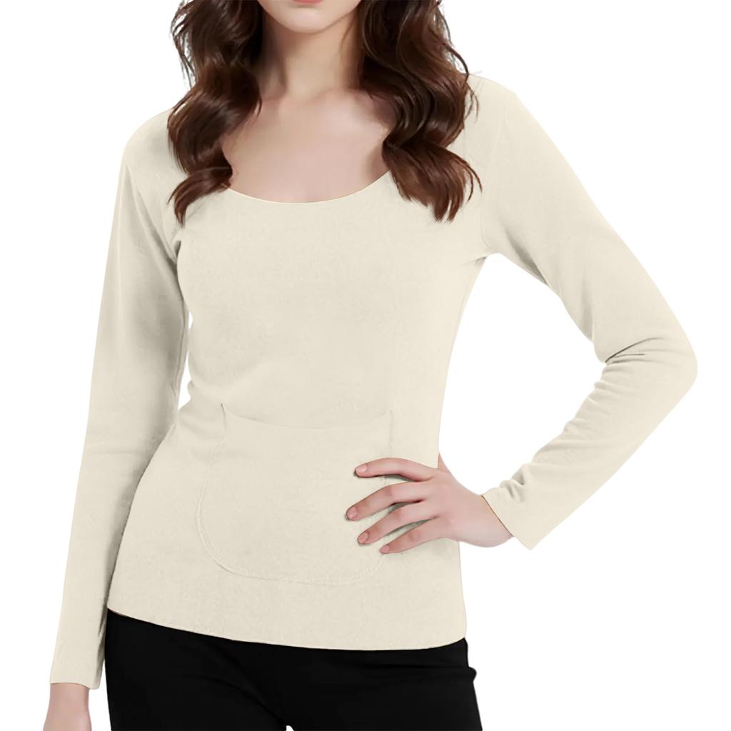 Женский однотонный топ с длинными рукавами, бесшовной талией, передними и задними карманами, теплый