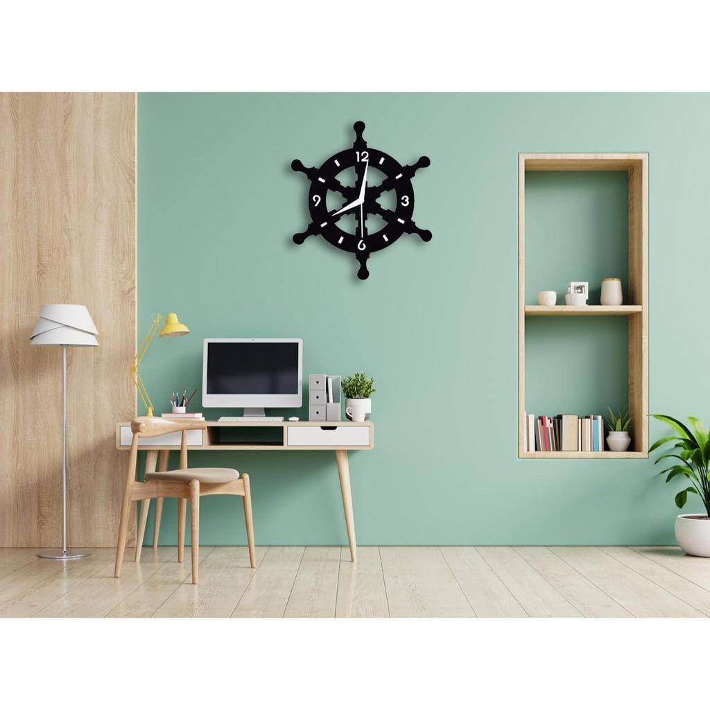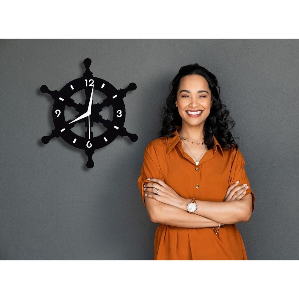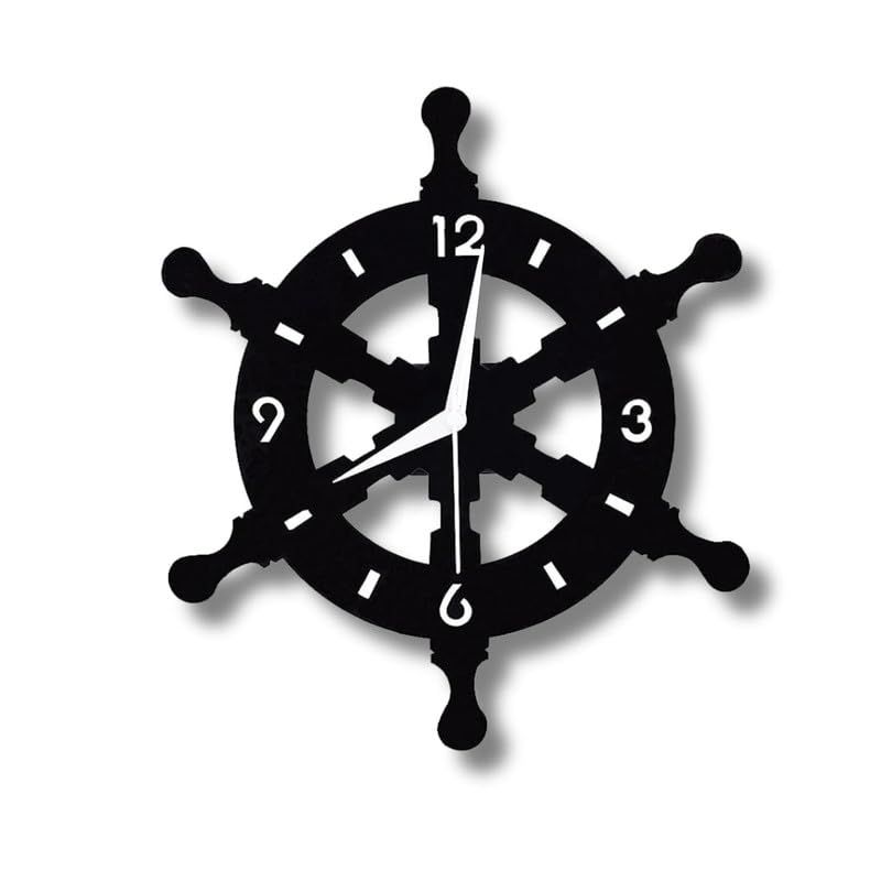 Металлические аналоговые настенные часы в форме штурвала для дома, офиса, гостиной, спальни, детской комнаты и кухни | Стильный новейший домашний декор | Черный цвет (Батарея в комплект не входит), 33X33 см