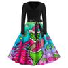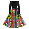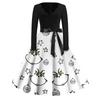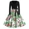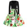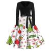 Женское модное платье с V-образным вырезом, повседневное, приталенное, с рождественским принтом, с длинным рукавом