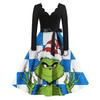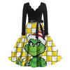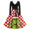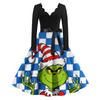 Женское модное ретро платье с длинным рукавом, квадратным вырезом, рождественским принтом, вечернее платье
