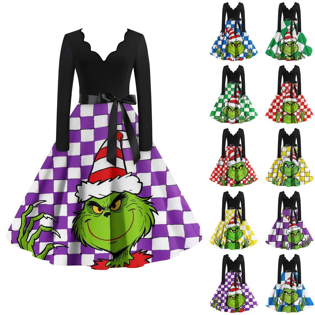 Женское модное ретро платье с длинным рукавом, квадратным вырезом, рождественским принтом, вечернее платье — купить товар онлайн с бесплатной доставкой по всему миру!