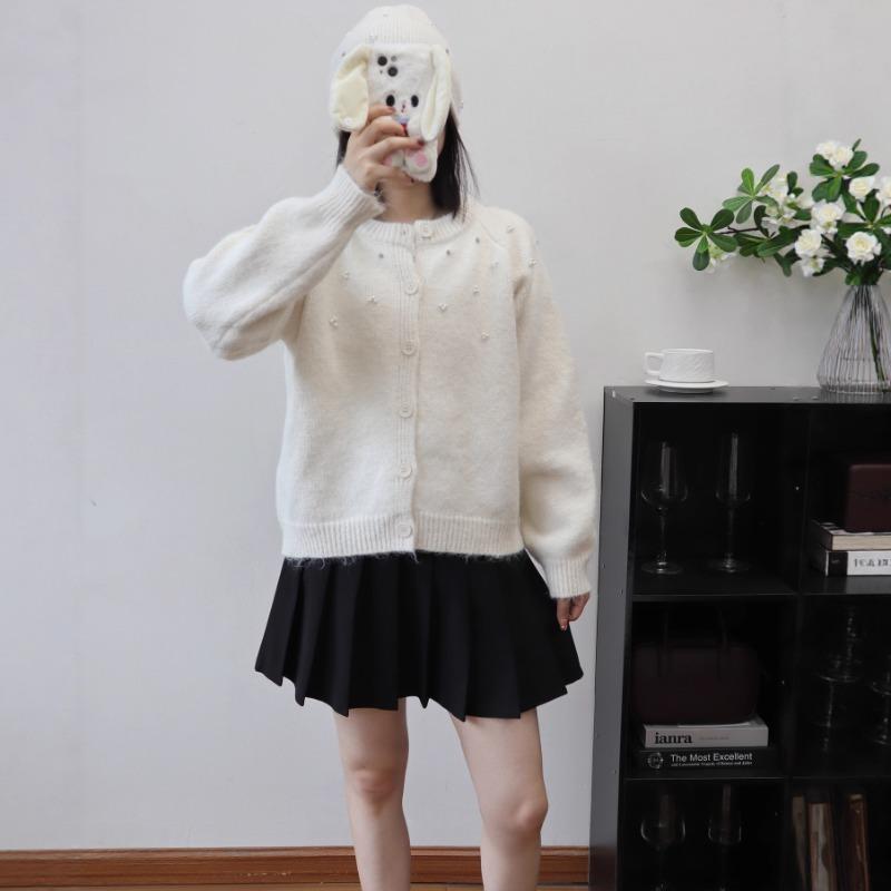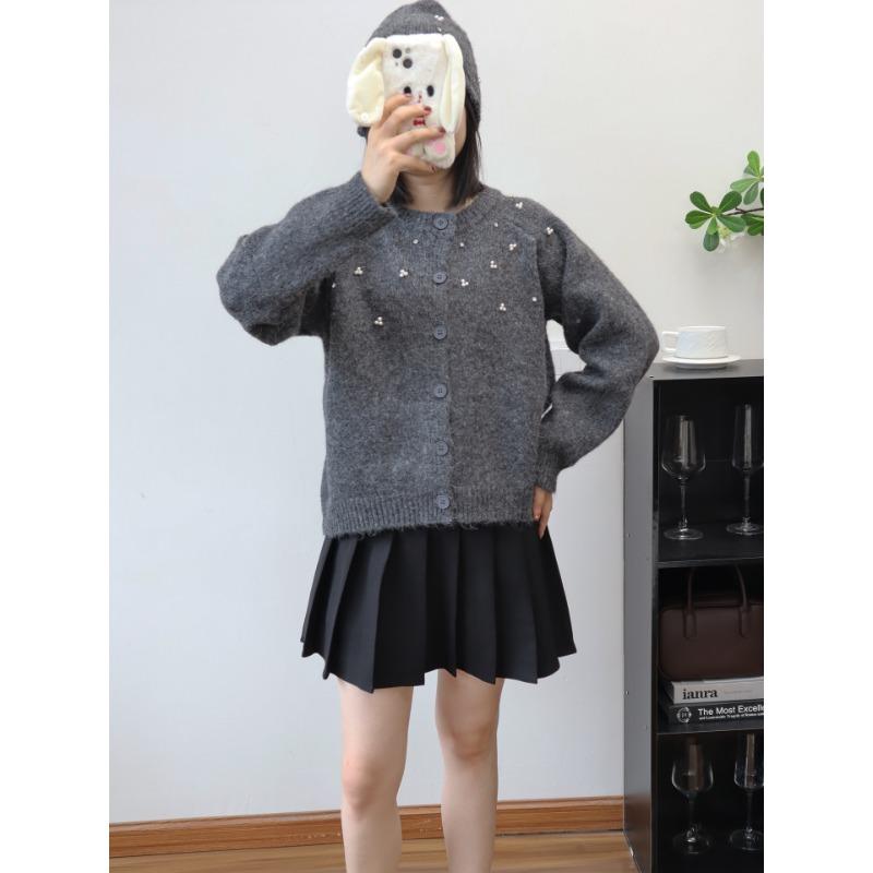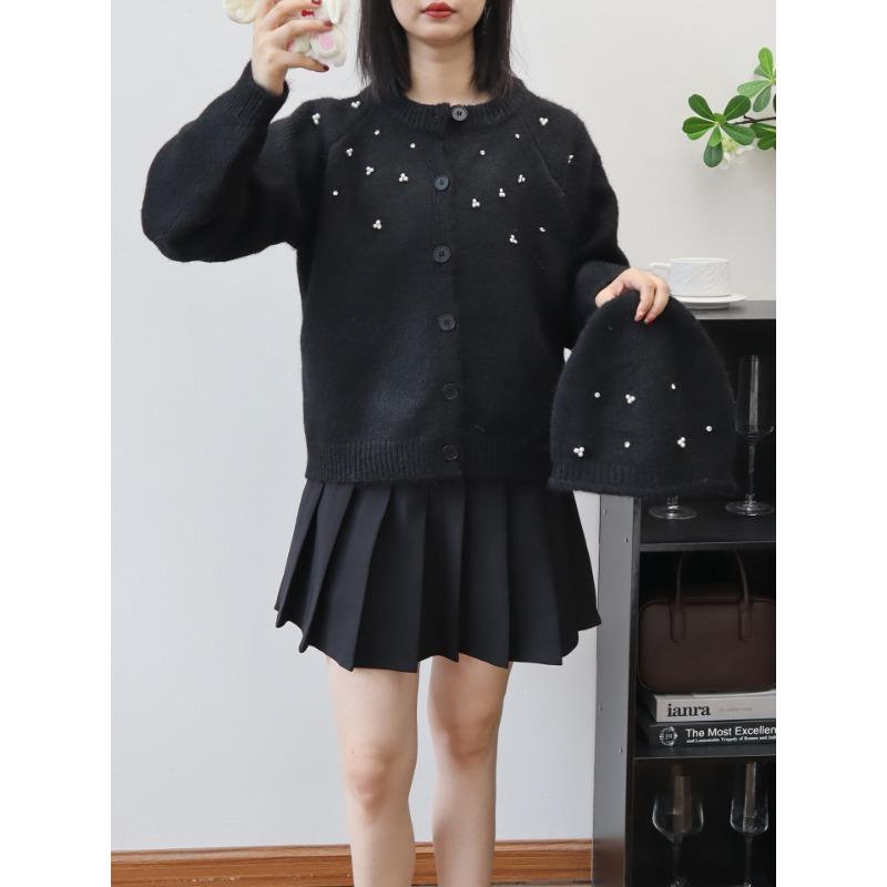 Тяжелая промышленность Дизайн бусин Чувство Шляпа Вязаный кардиган Осень и зима Новый Нежный ветер Свободный свитер Куртка Женская