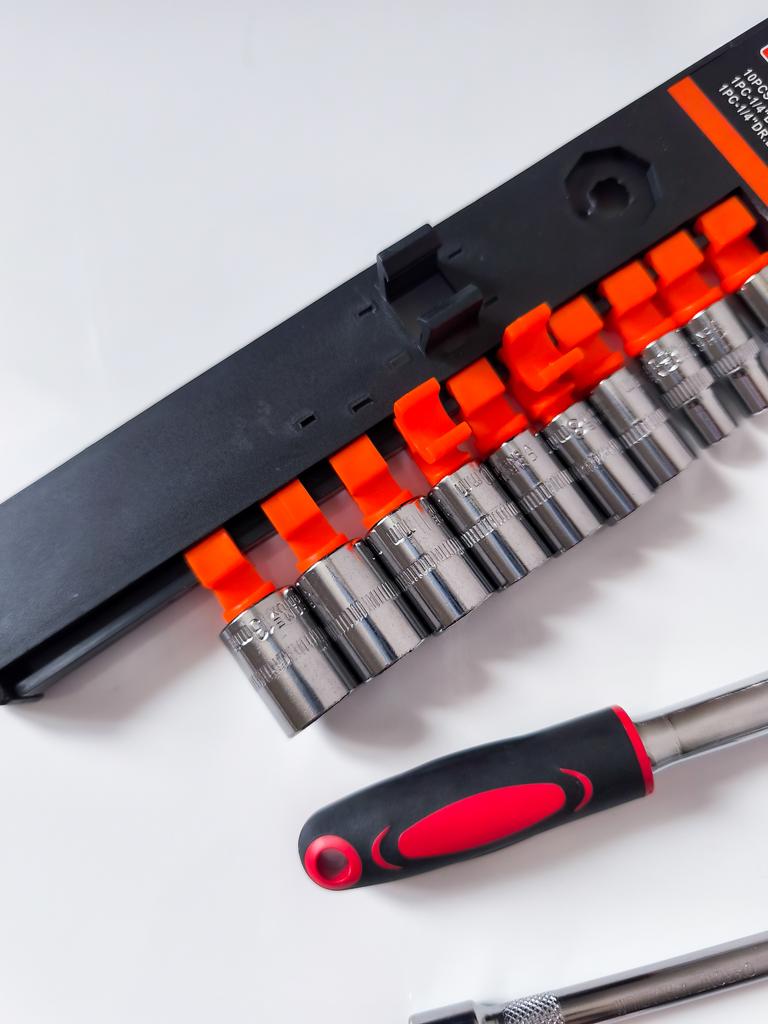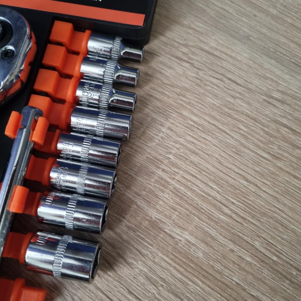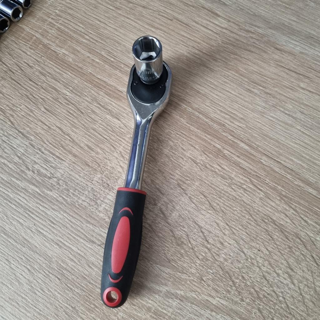 ❤️👍Набор торцевых головок с трещоткой 1/4" В комплект входит трещотка с посадочным квадратом 1/4", удлинитель и набор торцевых головок разных размеров, что делает его универсальным для мелких и средних бытовых работ. Размеры головок подобраны удачно — подходят для ремонта техники, мебели, велосипеда, автомобиля и других задач по дому. Трещотка компактная, удобно лежит в руке, ручка с прорезиненными вставками не скользит. Механизм работает чётко, переключение направления плавное. Для своего размера усилие передаёт нормально, без люфтов — это чувствуется в работе. Головки выполнены из металла, сидят плотно, не болтаются. Удлинитель помогает добраться до труднодоступных мест, что значительно упрощает работу. Все элементы аккуратно закреплены в держателе, набор не рассыпается и удобно хранить или брать с собой. Практичный и удобный набор для дома, гаража и мелкого ремонта. Хорошее соотношение цены и функциональности, особенно если нужен компактный инструмент «на каждый день».