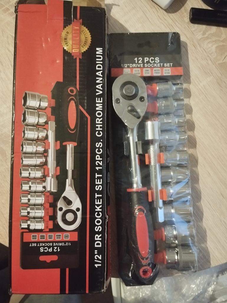 👍 Отличный набор. Ключ тяжёлый и крепкий, насадки все целые. В наборе шёл крепитель на стену в виде крючка и липкой основы. При перевозке повредилась основа пластмассовая, на которой держатся все насадки, сам набор весь целый. Муж доволен 🙂