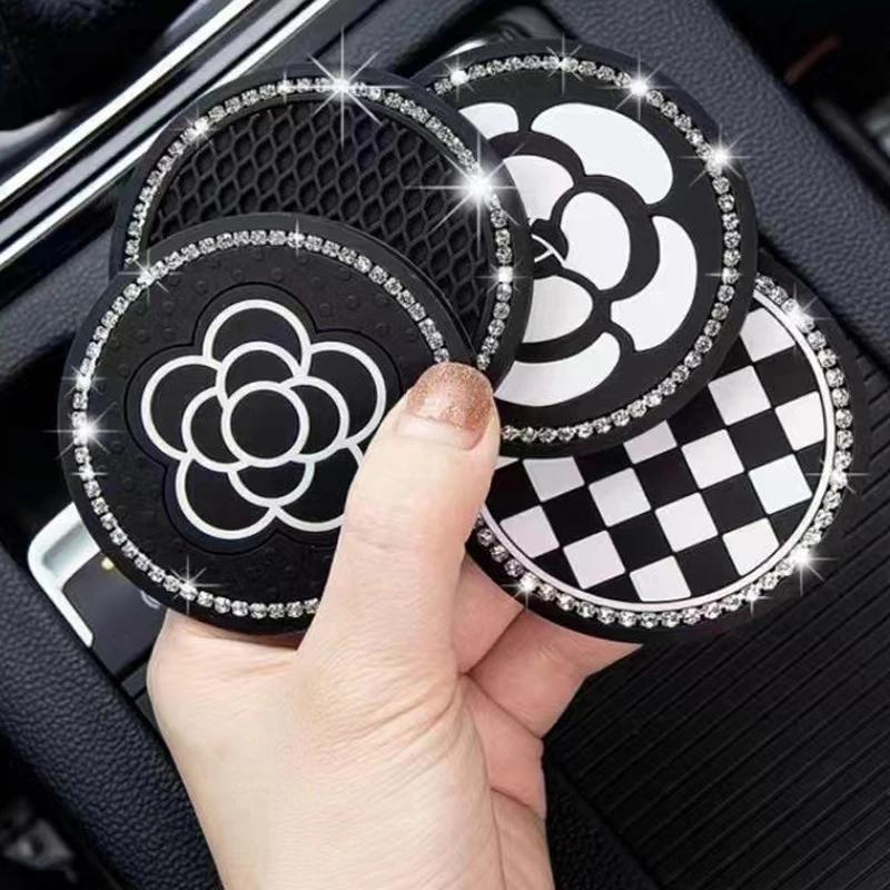 2 шт. камелия Автомобильные подставки для подстаканников Силиконовые Противоскользящие Блестящие Хрустальные Подставки для напитков Автомобильный коврик для стакана