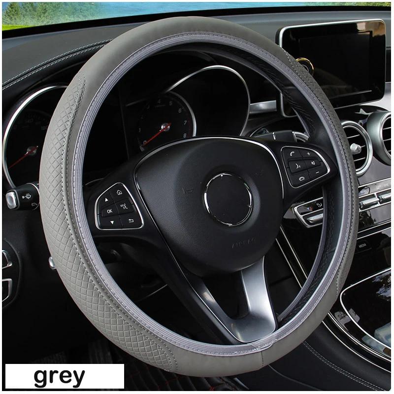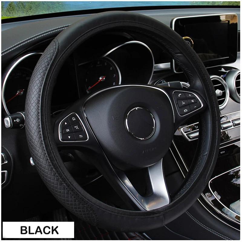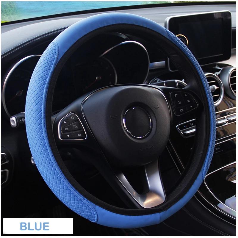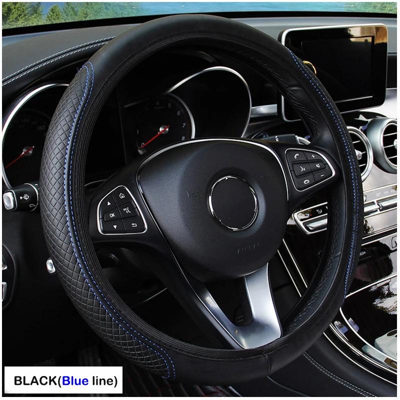 Кожаная оплетка на руль автомобиля, эластичная, дышащая, противоскользящая, универсальная 14,5-15 дюймов, оплетка на руль для мужчин и женщин