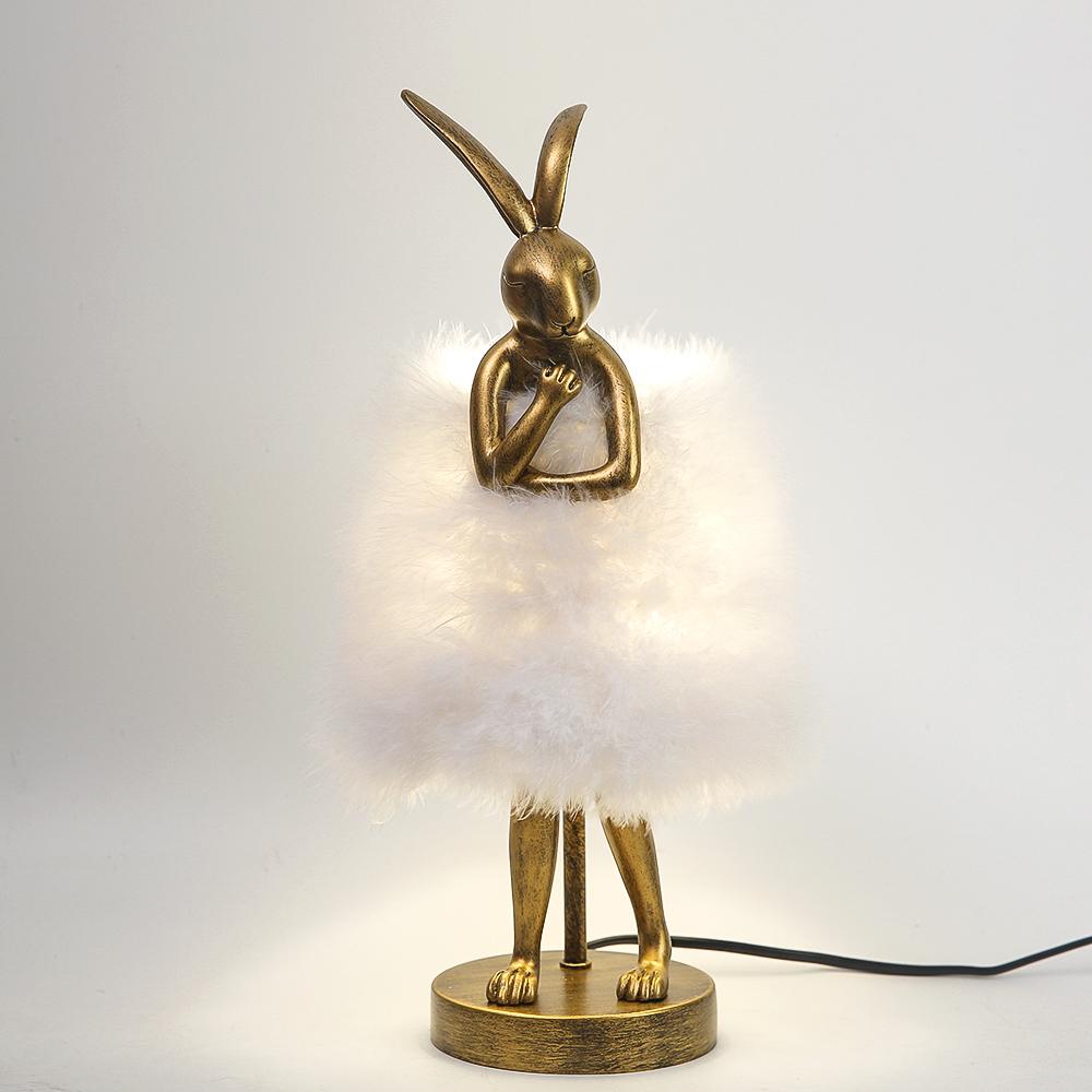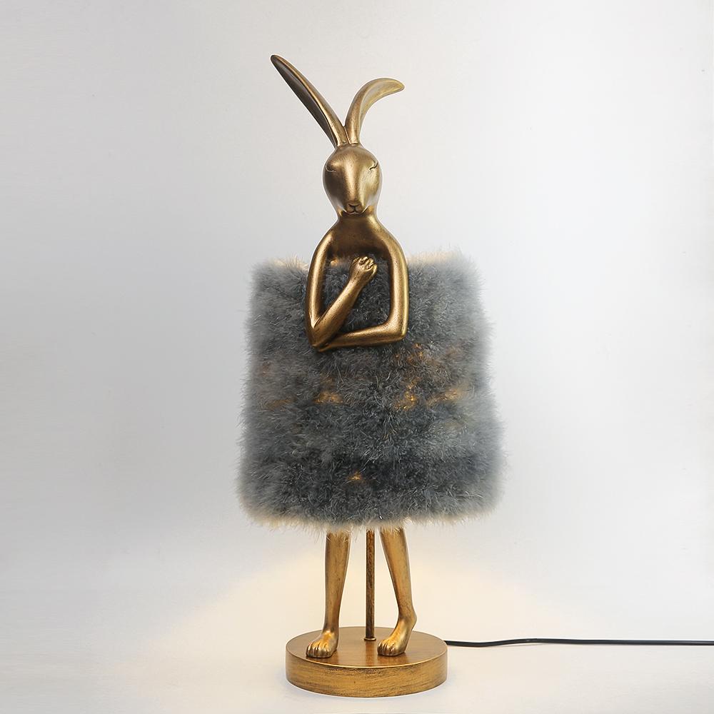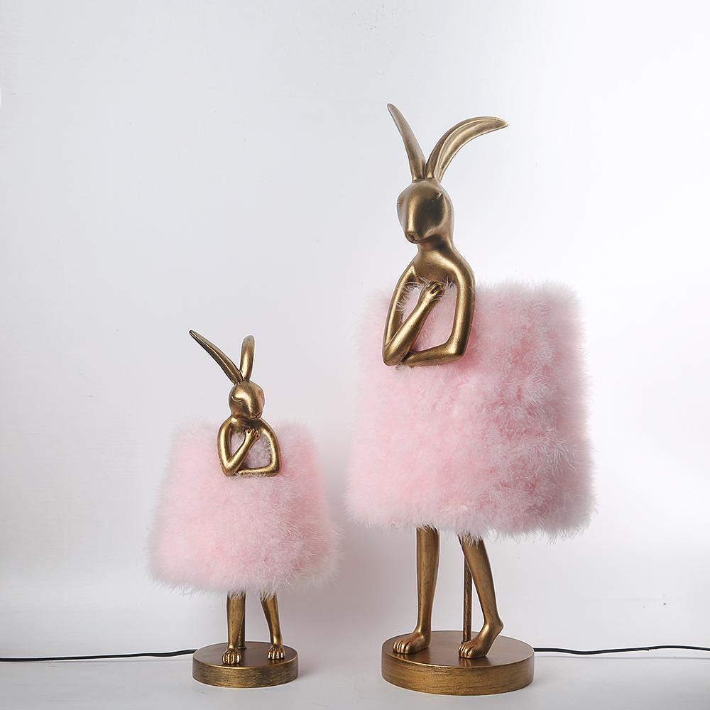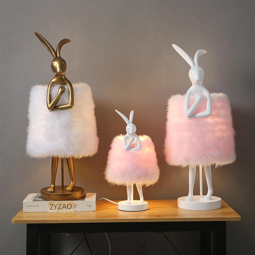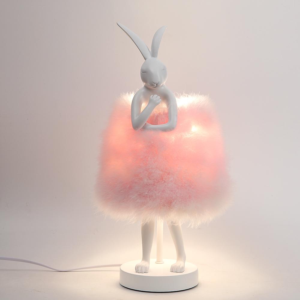 Торшеры из кроличьего пера, милый кролик, смола, креативная настольная лампа, прикроватная лампа, подарок, декор, светодиодная лампа для спальни, ретро лампа из перьев