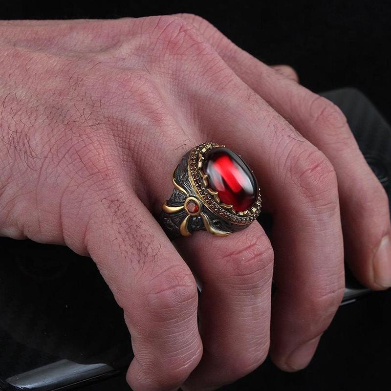 Винтажное двухцветное кольцо-тотем с большим овальным красным камнем и бантом для мужчин и женщин, готическое, для вечеринки, юбилея, ретро, циркон, подарок T4M864