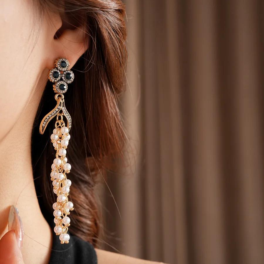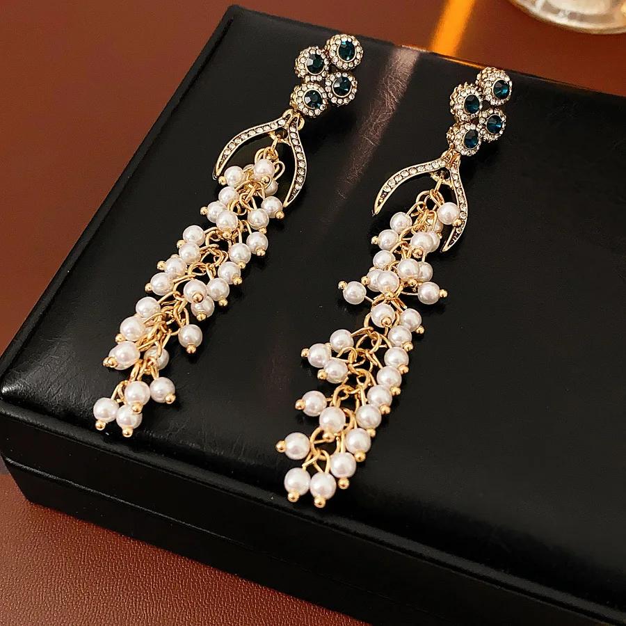 Винтажные ретро серьги для женщин, инкрустированные стразами, с кисточками в виде рыбьего хвоста и жемчужной подвеской, дизайнерские, роскошные, с цирконами, подарки