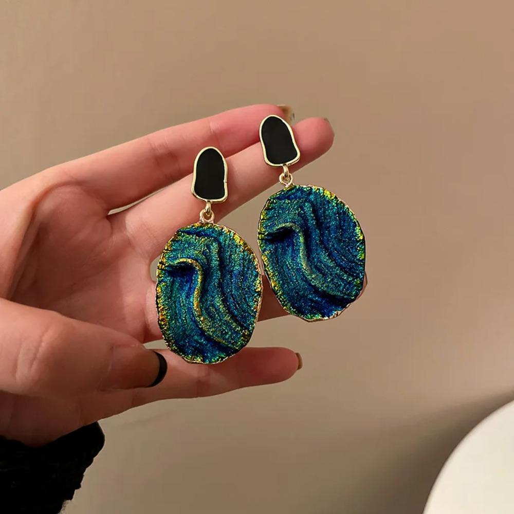 Серьги-капли из смолы с маслом для женщин, модные этнические серьги-капли, ретро, преувеличенные, персонализированные, с зеленым цирконом, подарок — купить товар онлайн с бесплатной доставкой по всему миру!