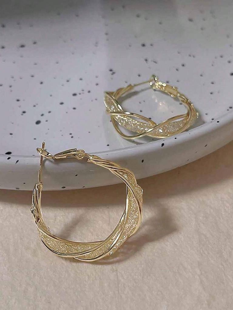 Великолепные серьги-кольца переплетенного золотистого цвета с замысловатой сеткой, стильные серьги для женщин, подарок для вечеринки, циркон
