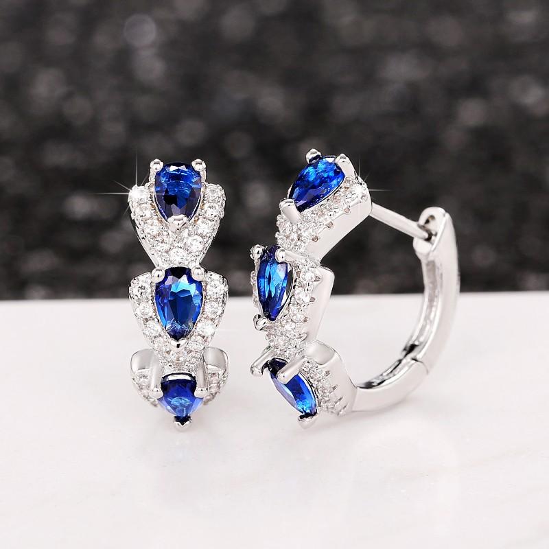 Huitan Модные серьги-кольца с синим/белым кубическим цирконием Новая мода Циркон для женщин Свадебная вечеринка Темперамент Женские аксессуары — купить товар онлайн с бесплатной доставкой по всему миру!