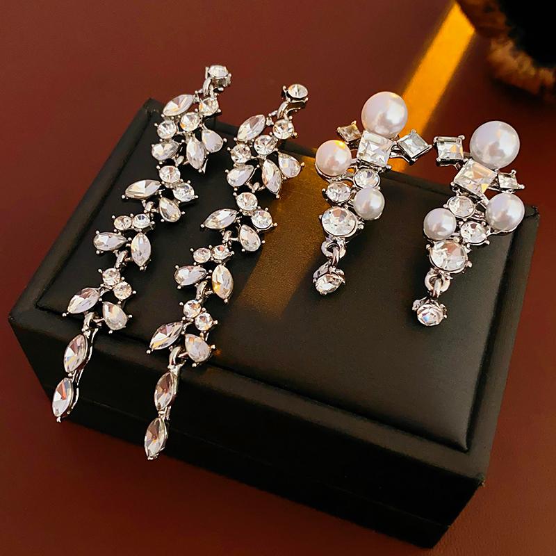 Серьги-подвески с инкрустацией стразами и жемчугом, геометрической бахромой для женщин, преувеличенные, высококлассные, с темпераментом, тренд, циркон, подарок — купить товар онлайн с бесплатной доставкой по всему миру!