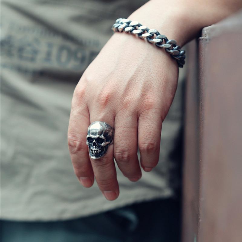 Ретро Кольцо с Черепом Большое для Мужчин Цинковый Сплав Цвет Панк Готика Рок Хип-хоп Кольцо Ручной Работы Дизайнер Циркон Байкерские Аксессуары Унисекс Подарок