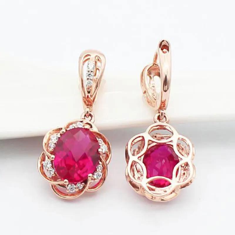 Изысканные роскошные серьги-цветы с рубинами для женщин, медь с покрытием из розового золота, инкрустированные овальным цирконом, модные серьги, свадебный подарок