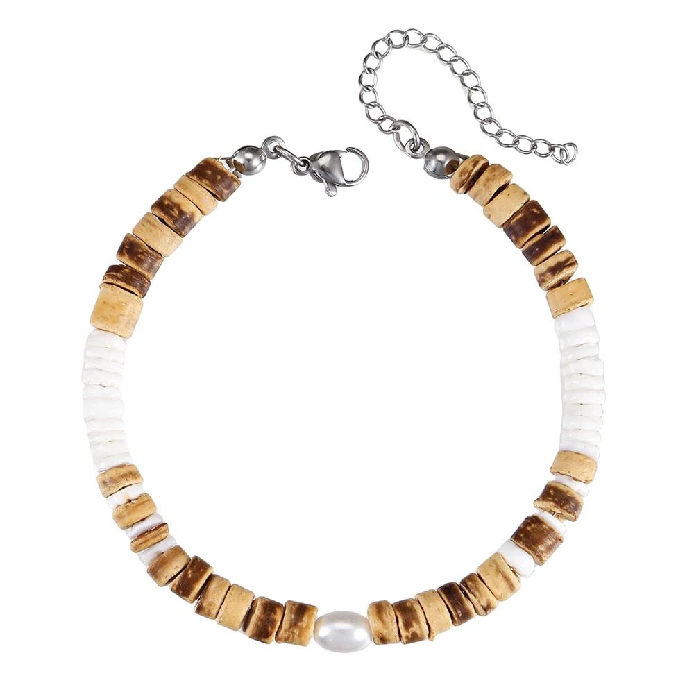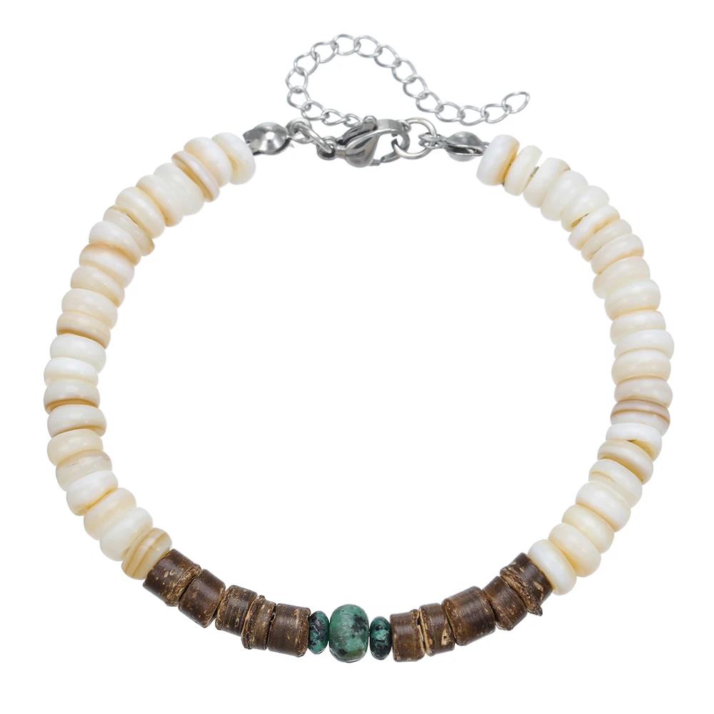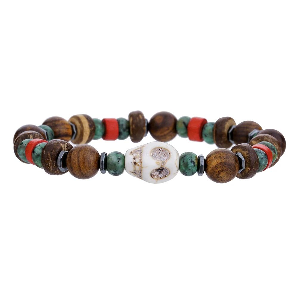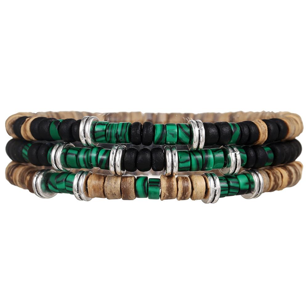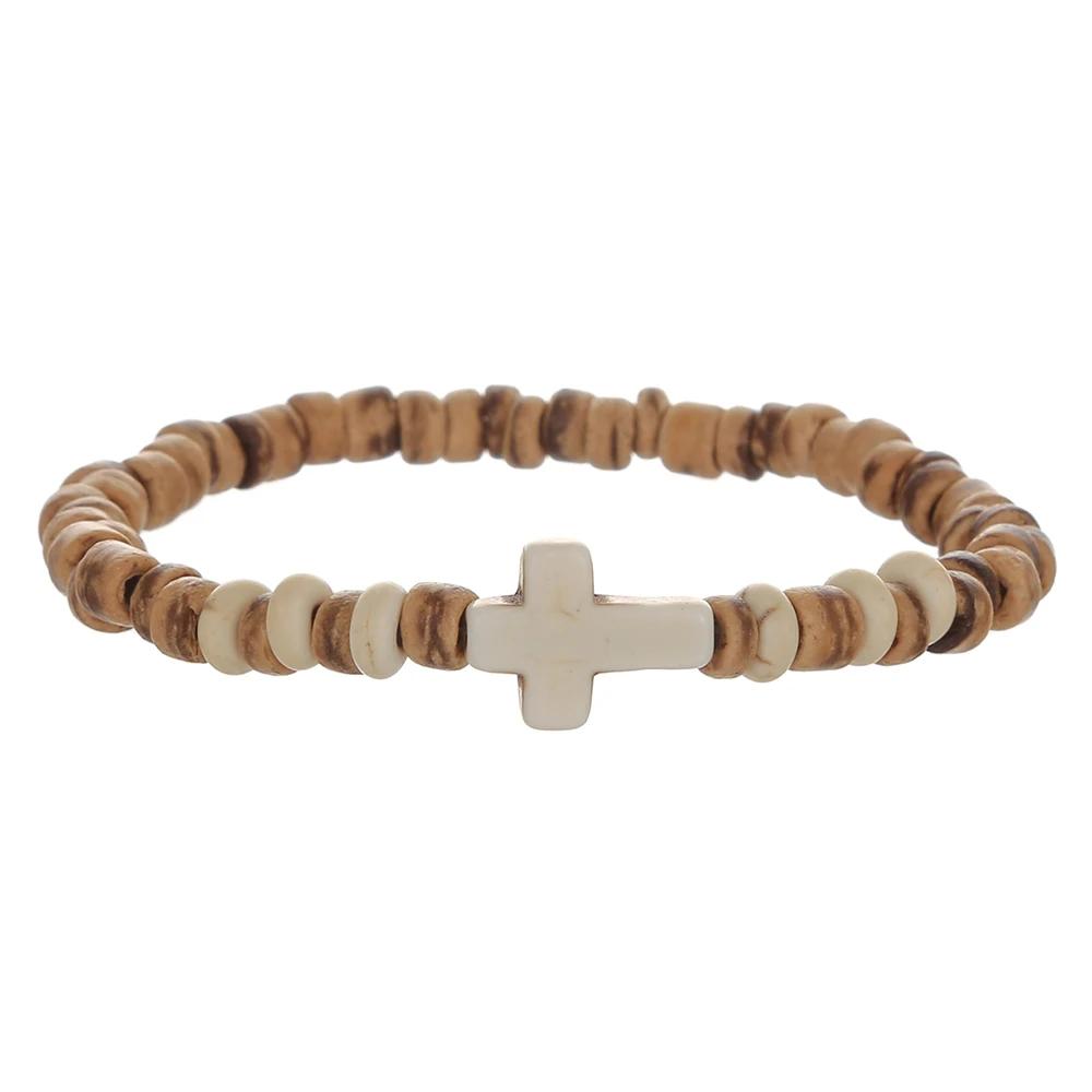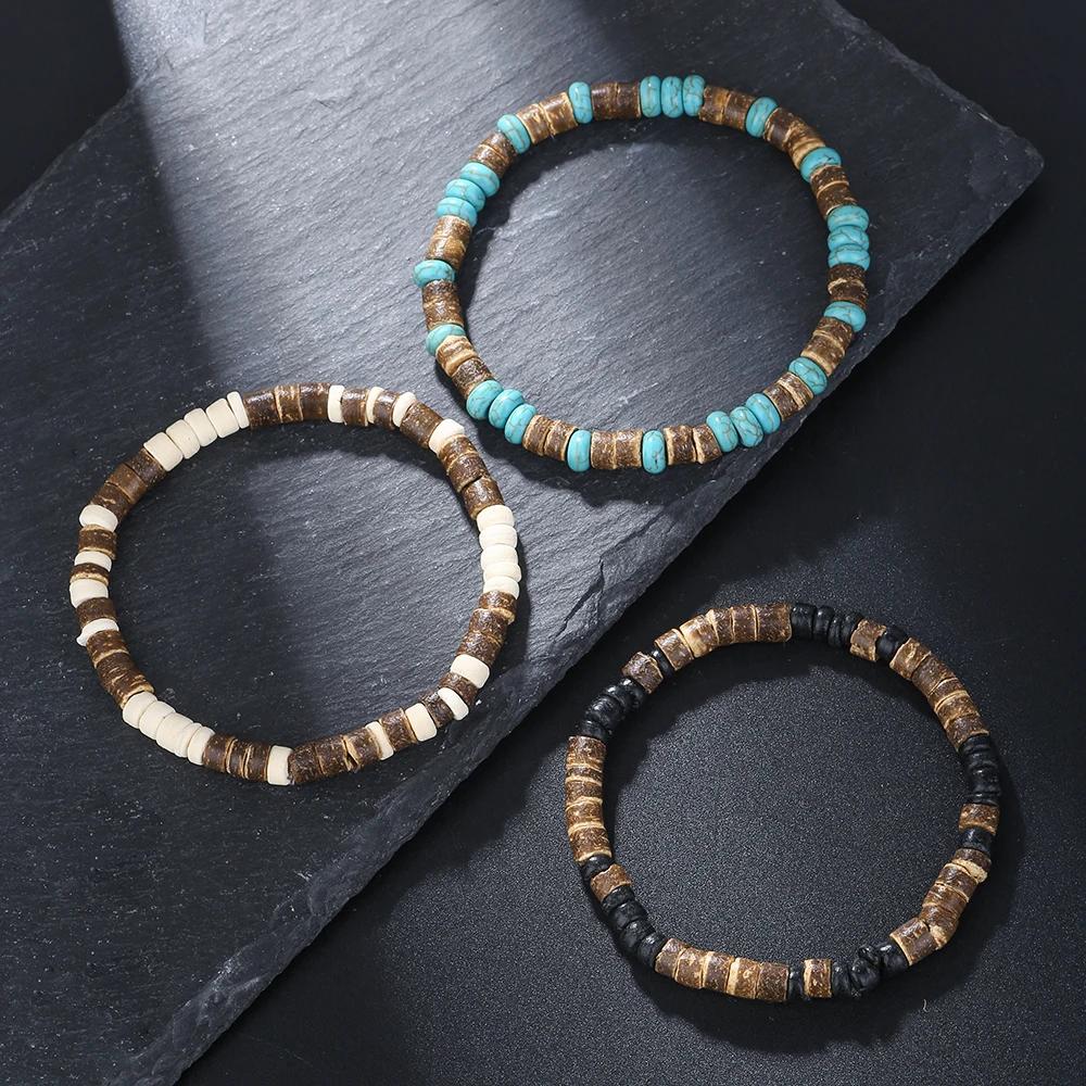Браслет из кокосового дерева с бусинами, эластичный, браслеты с бирюзовыми бусинами для мужчин и женщин, ручной работы, нанизанные, деревянные браслеты-стретч