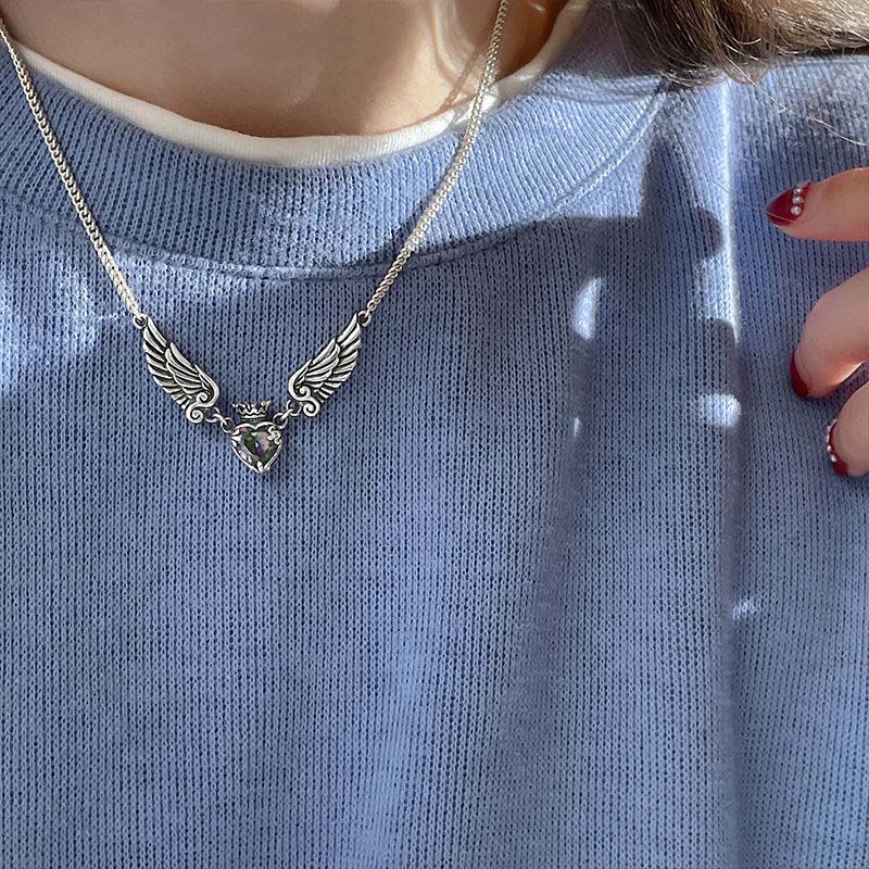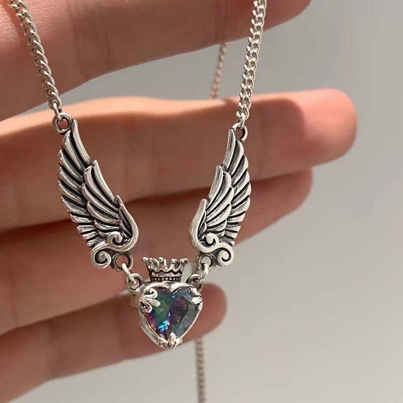 Винтажные готические ожерелья-подвески в виде сердца, короны, крыльев ангела для женщин, модные изысканные ожерелья-чокеры на ключицу в форме любви с цирконом
