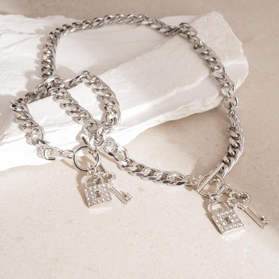 3 шт. Инкрустированные стразами Замок-ключ OT Подвеска Наборы с цирконами для женщин Легкая роскошь 2025 Мода Преувеличенный набор колье и браслета