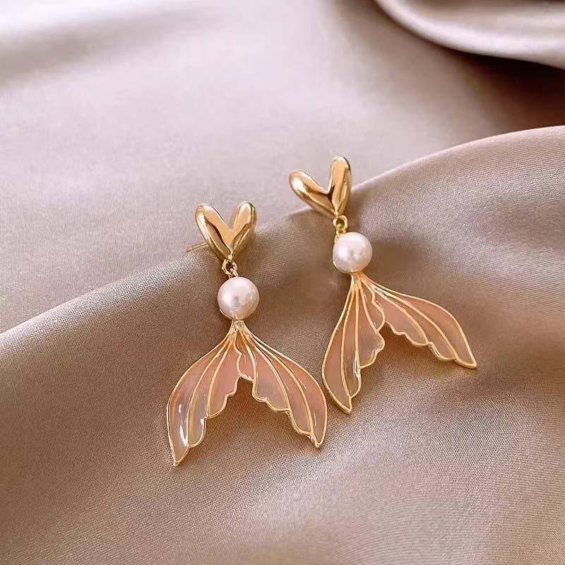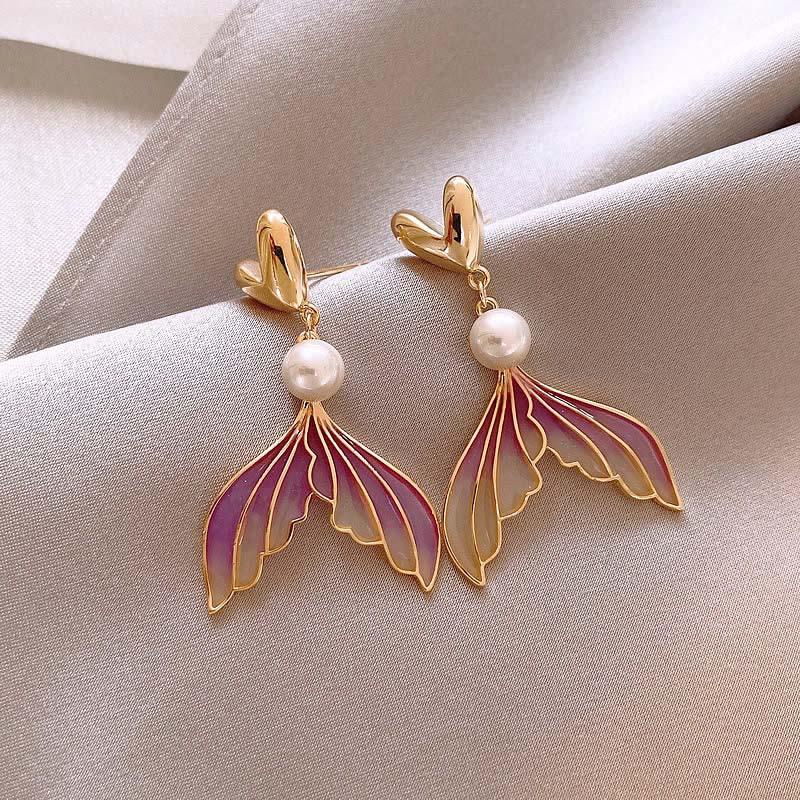 2024 Новая Мода Градиентные Серьги-Капли с Жемчугом в Форме Рыбьего Хвоста для Женщин Элегантные Милые Длинные Асимметричные Темпераментные Серьги с Цирконом