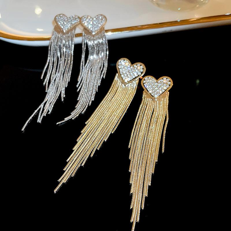Роскошные серьги-капли в форме сердца Женская мода Стразы Кристалл Цепочка Длинные серьги-кисточки Свадебная вечеринка Циркон Аксессуары