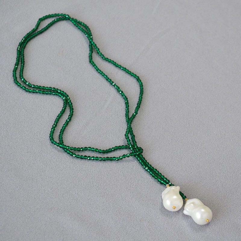 Винтажное ожерелье с подвеской из зеленого хрусталя и жемчуга для женщин, модное, ручной работы, из бисера, длинное, с регулируемой цепочкой для шеи, с цирконом