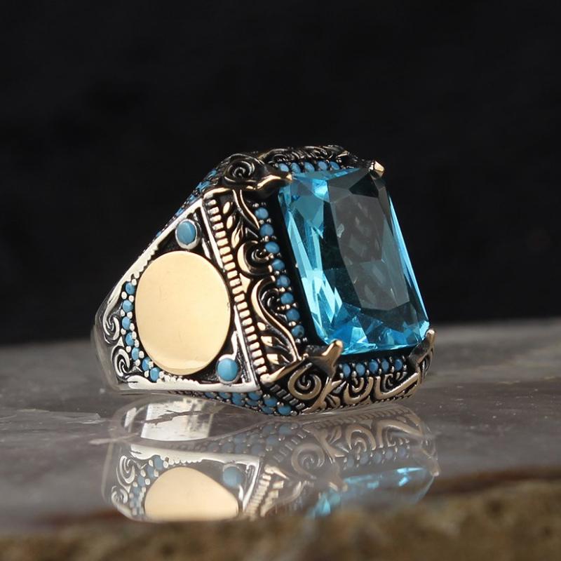 Топаз Традиционные Ручной Работы Турецкие Кольца-печатки из Цинкового Сплава Стерлингового Серебра с Цирконом Подарок из Турции для Женщин Мужчин
