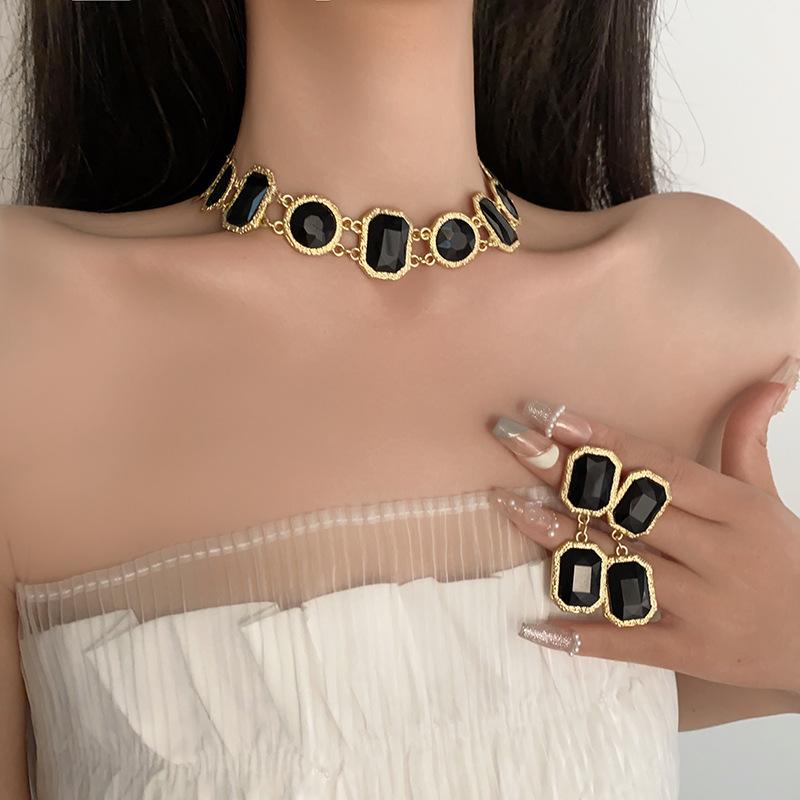 Кристальное квадратное круглое ожерелье для женщин Ретро модная цепочка-колье Роскошные свисающие серьги Женский набор украшений из двух частей