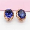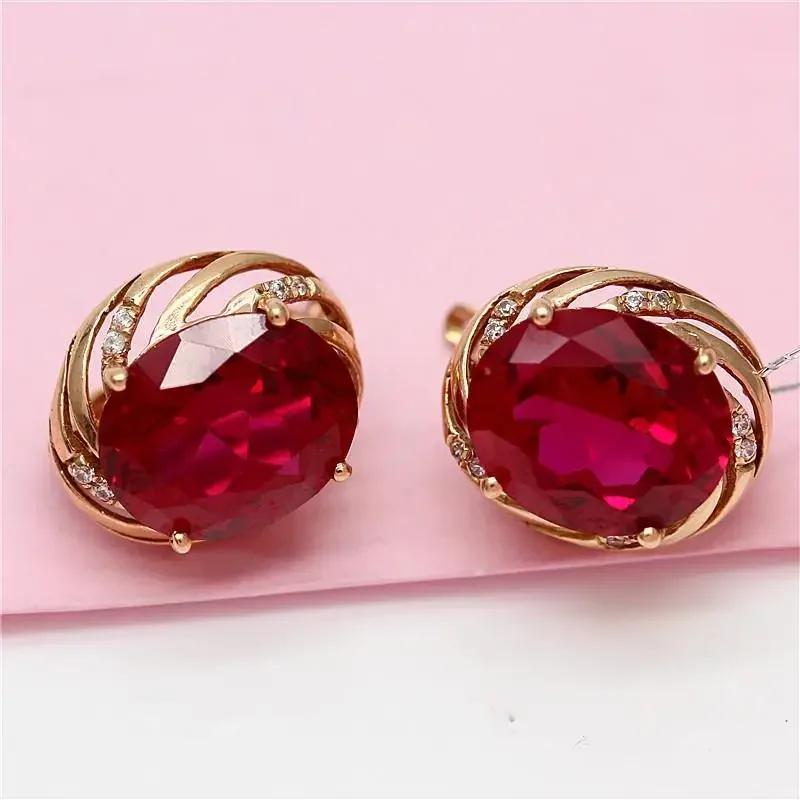 Классическая серия романтические сапфировые серьги-пусеты с розовым золотым покрытием, инкрустированные овальными рубинами, для женщин на свадьбу, циркон