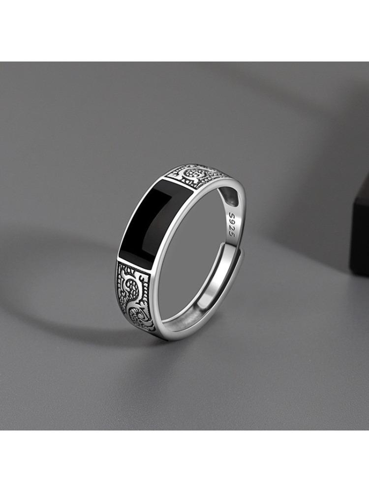 Мужское трендовое персонализированное открытое кольцо Модное простое этническое стиль Черное мужское прямоугольное ретро Дракон