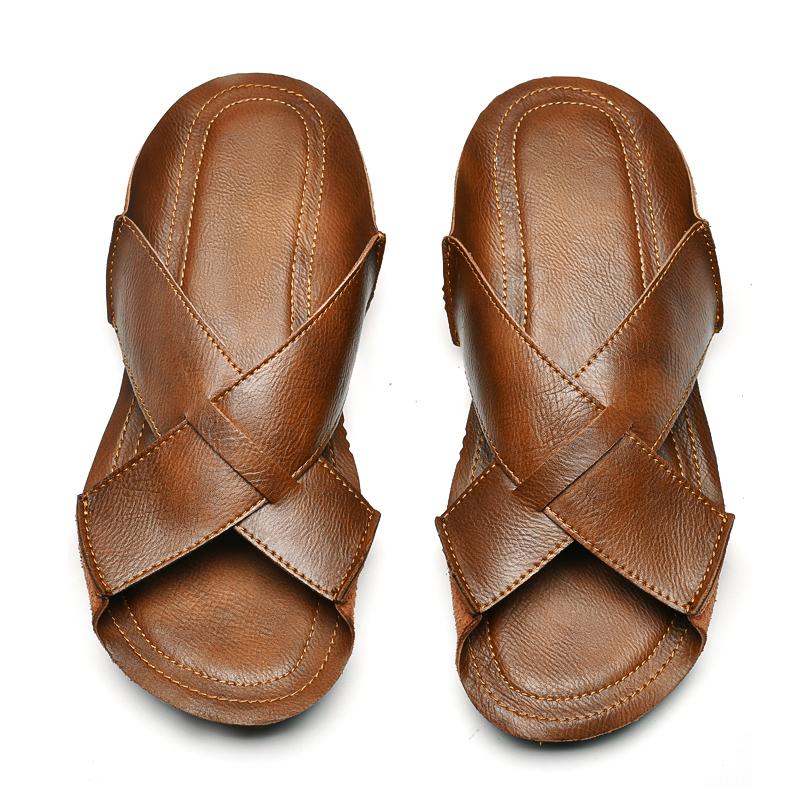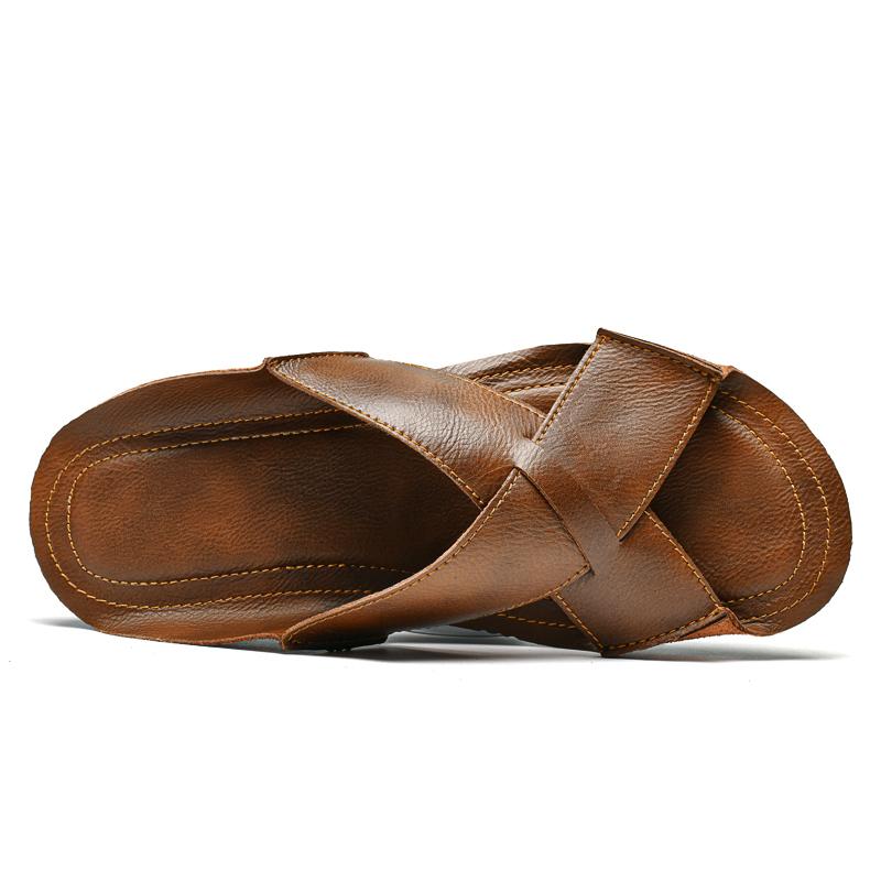 Мужские пляжные тапочки из натуральной кожи, домашние сандалии больших размеров, летние пляжные сандалии, уличные повседневные прогулочные пляжные шлепанцы, мужская обувь