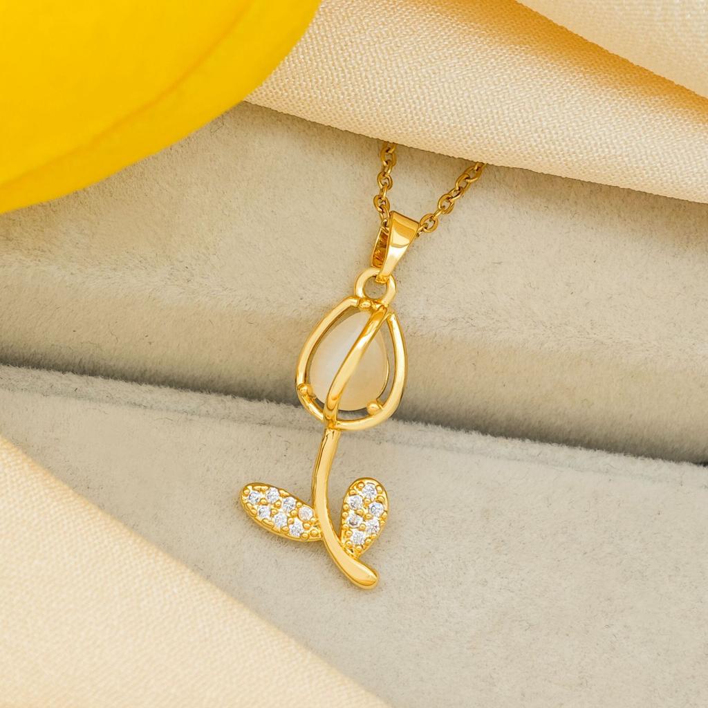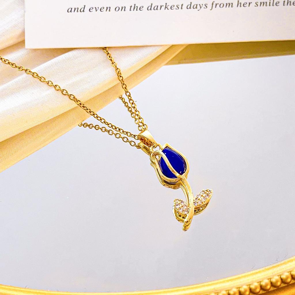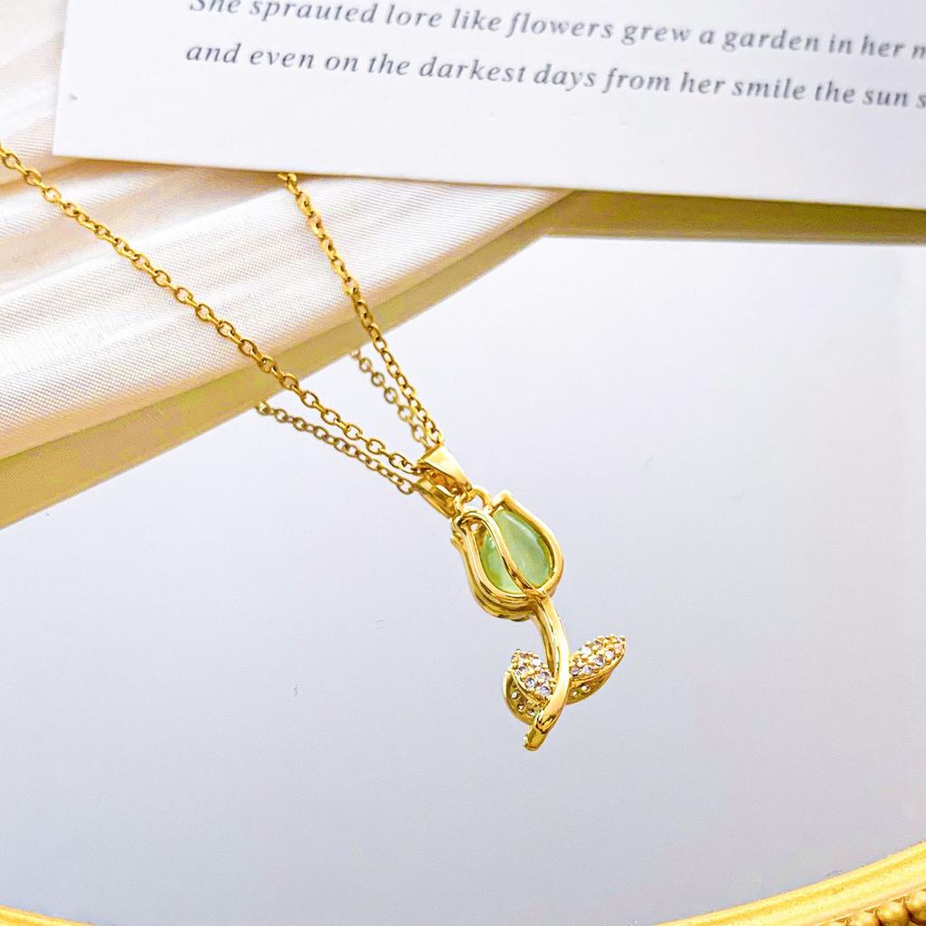 Женское ожерелье Опаловое ожерелье-тюльпан Нишевый дизайн, Универсальное ощущение высокого класса Универсальные аксессуары из титановой стали