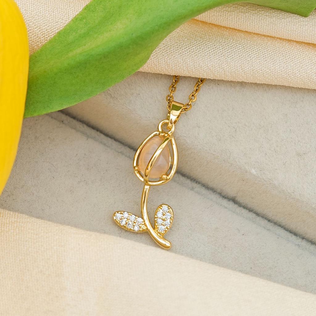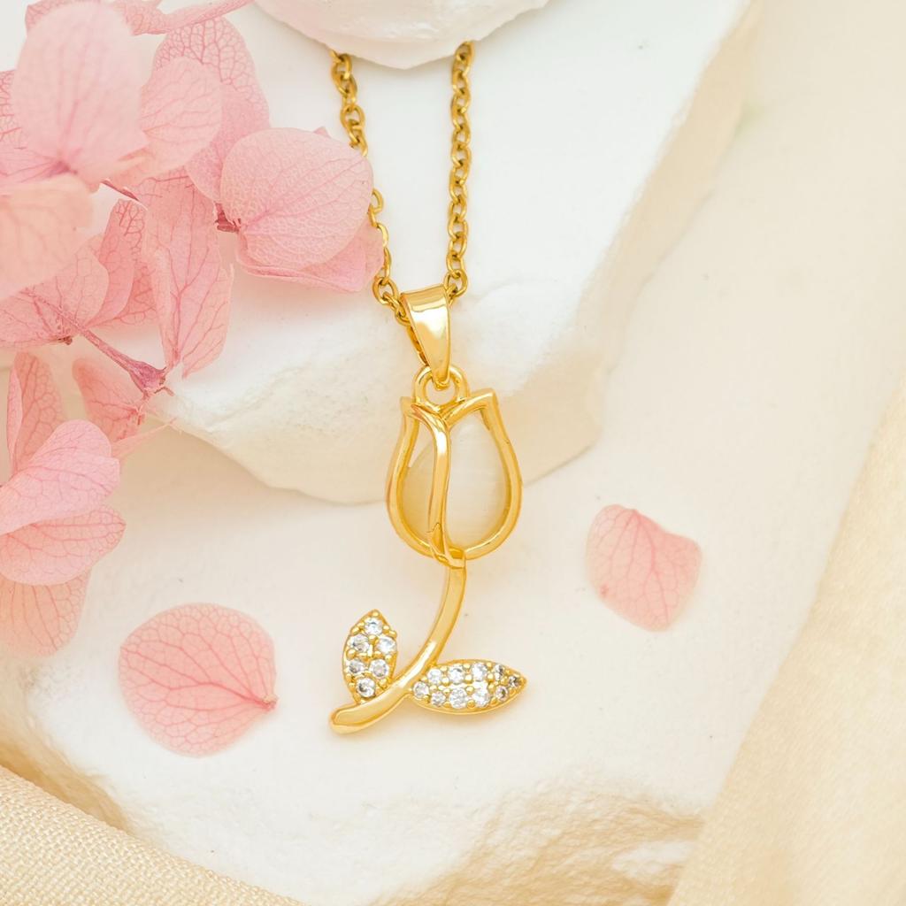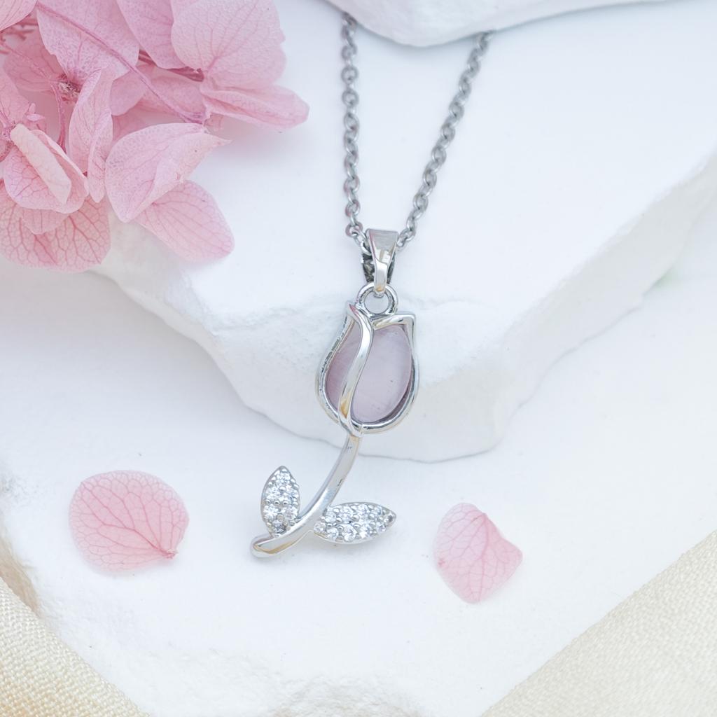 Женское ожерелье Опаловое ожерелье-тюльпан Нишевый дизайн, Универсальное ощущение высокого класса Универсальные аксессуары из титановой стали