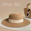 Соломенная шляпа с плоским верхом, летний женский козырек на завязках, универсальная соломенная модная шляпа-топ из атласа, пляжная шляпа для морского побережья
