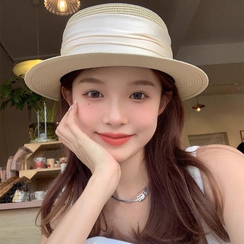 Соломенная шляпа с плоским верхом, летний женский козырек на завязках, универсальная соломенная модная шляпа-топ из атласа, пляжная шляпа для морского побережья — купить товар онлайн с бесплатной доставкой по всему миру!