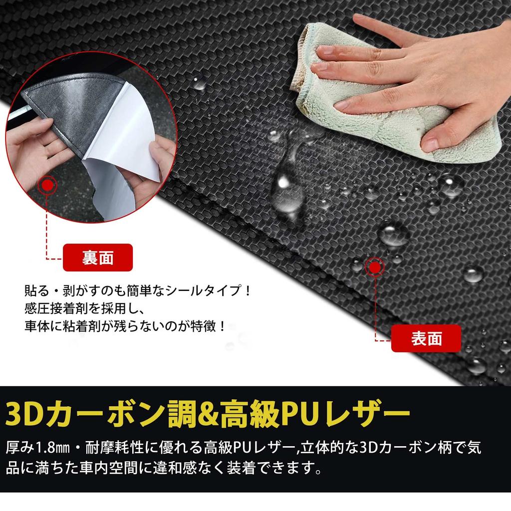 3. [Вид 3D-углеволокна и премиальная ПУ-кожа] Черная отделка органично вписывается в интерьер вашего автомобиля, а трехмерный 3D-рисунок углеволокна на поверхности делает его естественным дополнением к любому элегантному интерьеру. Даже если он испачкается, его можно легко протереть тряпкой для легкого ухода.. Премиальная ПУ кожа также обладает высокой износостойкостью и долговечностью, имеет толщину 1,8 мм и высокую плотность для превосходной амортизации и бережного отношения к кузову автомобиля.