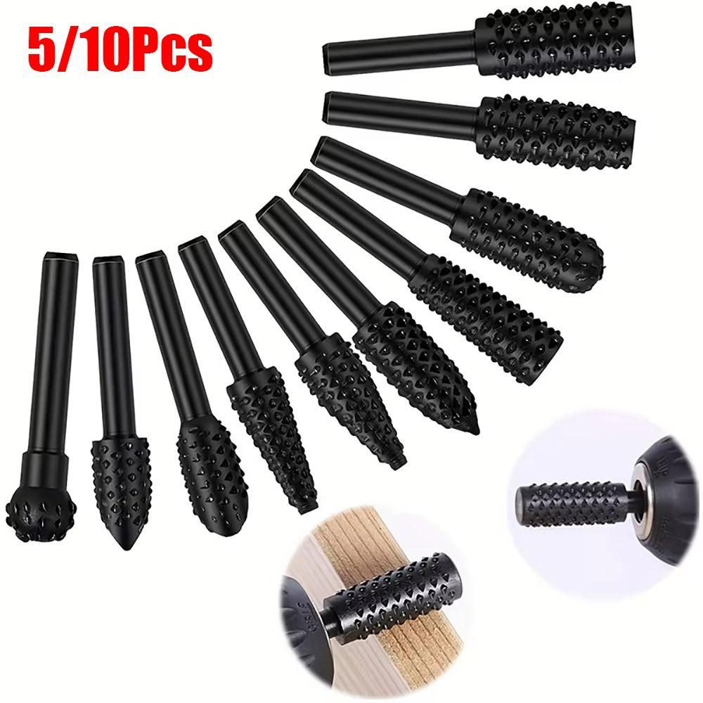 5/10 шт. Прочный набор ротационных боров с хвостовиком 6 мм Сталь Черный Серый Рашпиль по дереву Напильник Шлифовальная головка Сверла Полировка