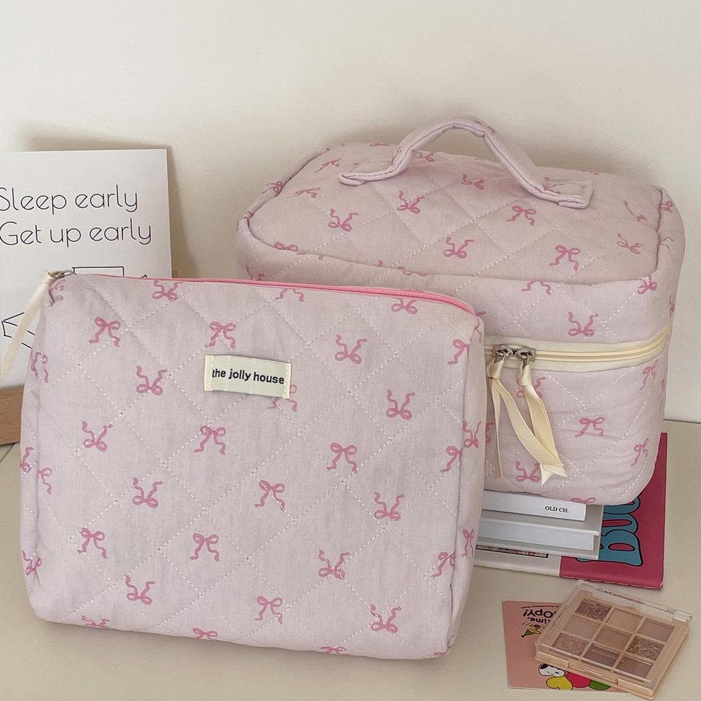 Корейский стиль Розовая лента Стеганая косметичка - Большая вместимость Милая девичья сумка для умывания