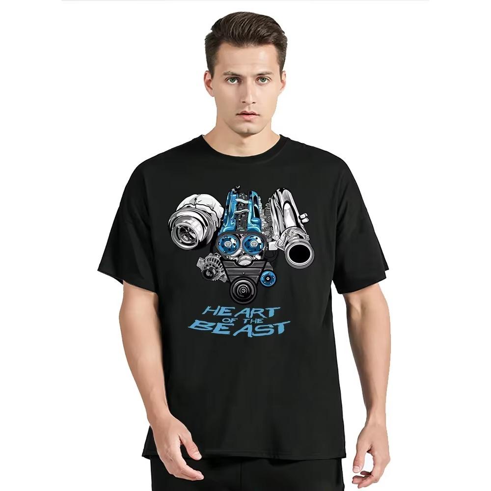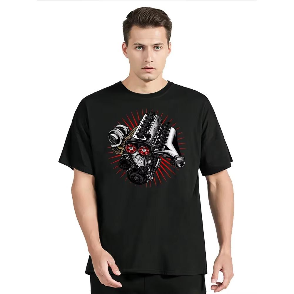 Японский Автомобиль Двигатель 2JZ Турбо Тюнинг JDM Принт Футболка Новая Мода Повседневная Футболка с Круглым Вырезом Мужская Одежда Футболка Оверсайз