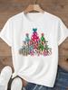 (Азиатский размер) Топ футболка фестиваль С Рождеством Новым годом Праздник Женская с надписью милый стиль Принт Леди Короткий рукав Мода Графические футболки
