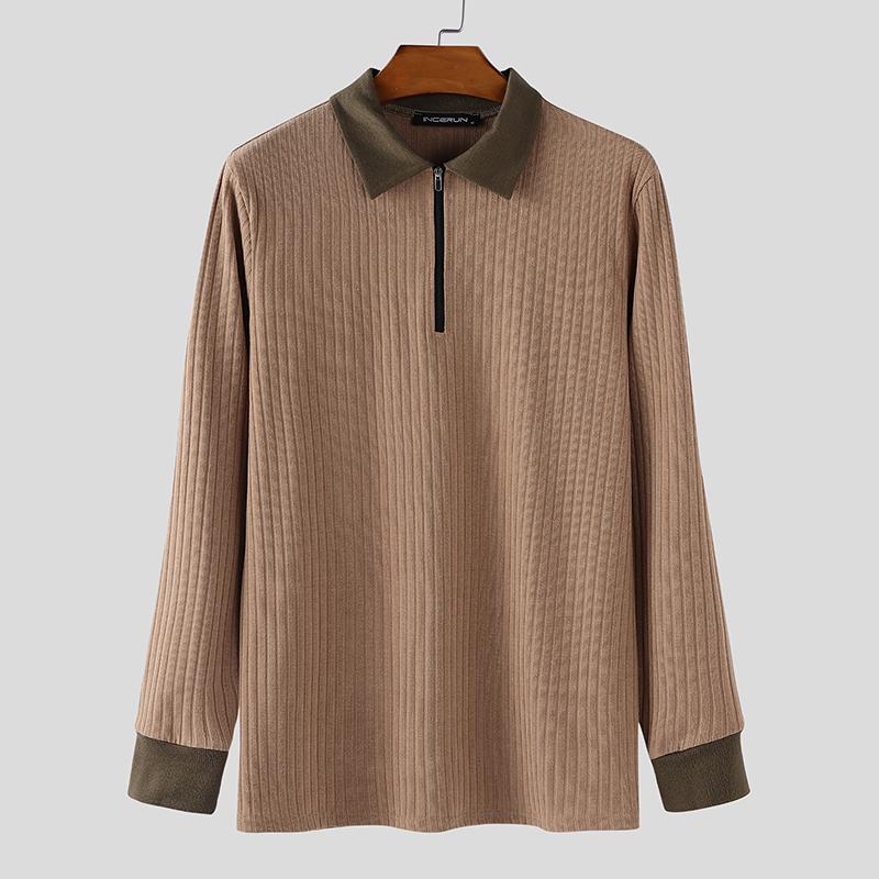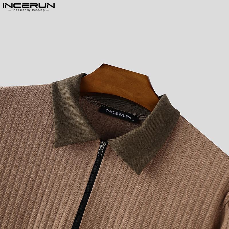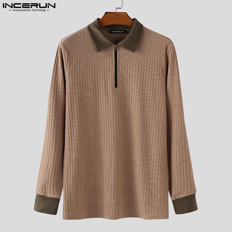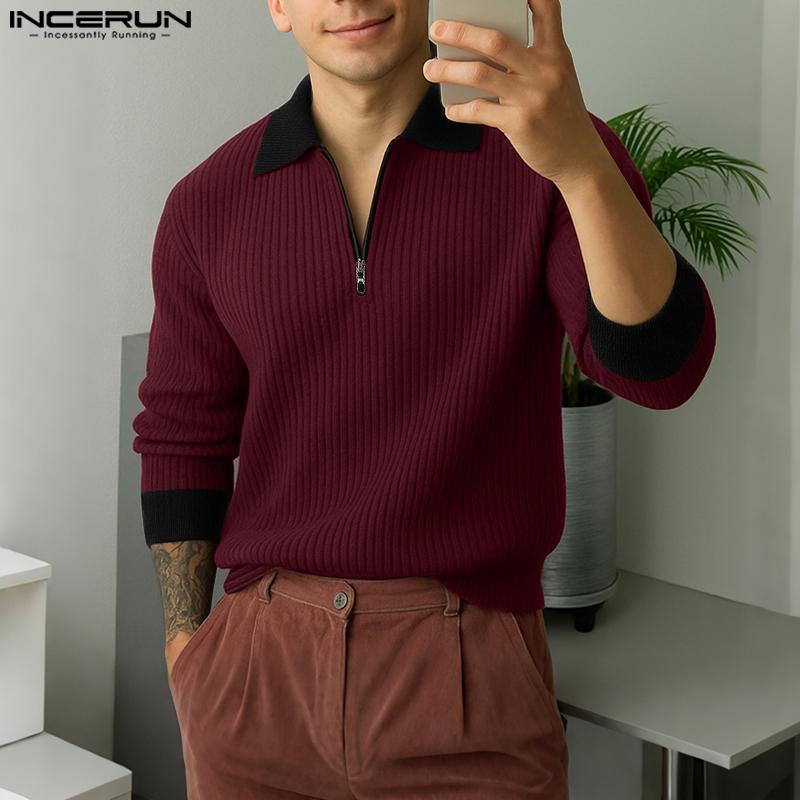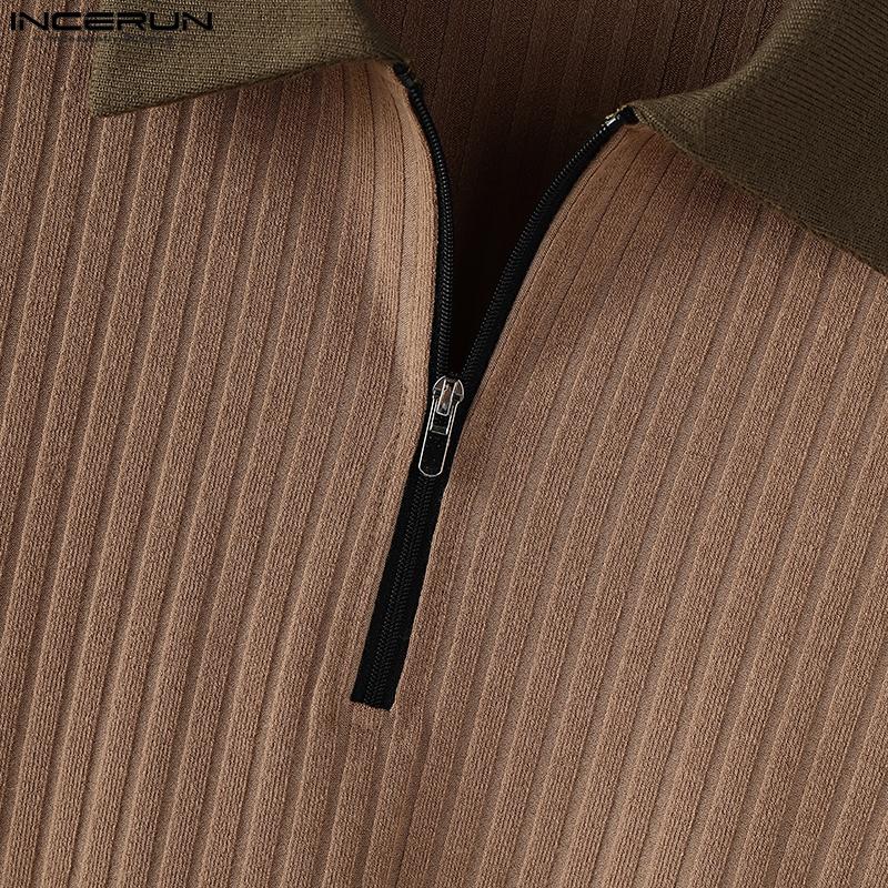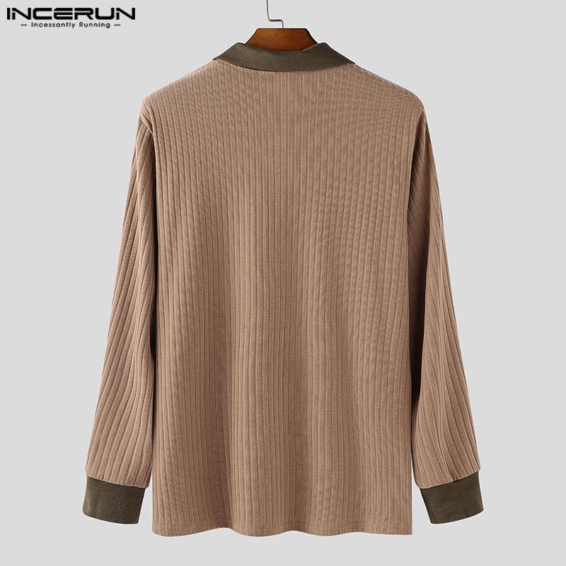 INCERUN Осенние мужские пуловеры с лацканами, длинными рукавами, сшитые в стиле пэчворк, вязаные резинкой, топы