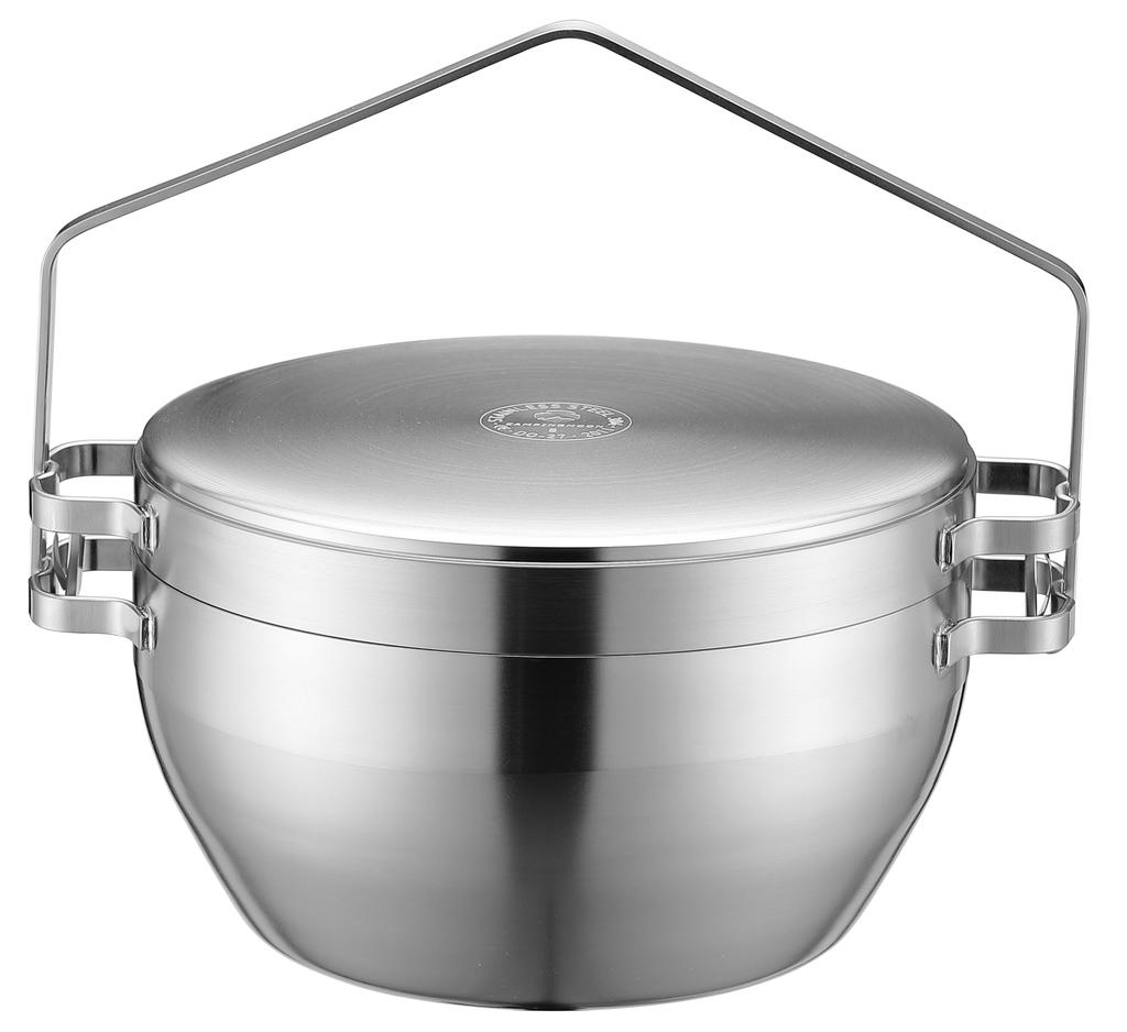 [Iron is labor-intensive] This Dutch oven is made entirely of stainless steel 304, not cheap aluminum alloy or stainless steel 430. Its sturdy, heavy lid allows for charcoal to be placed on top, making it a popular outdoor cooking tool. Its high heat retention and top heat allow for oven cooking, as well as simmering, baking, frying, steaming, and deep-frying. Cast iron is the norm for Dutch ovens, and they've become so commonplace you can even find them at hardware stores and 100-yen shops. While it's certainly desirable to have a well-used Dutch oven that's been worn until it shines black, it's also true that achieving that level takes time and effort. There's a risk of rust if not properly cared for, and due to its heavy weight and cumbersome handling, it's often seen as an item for advanced cooks.
