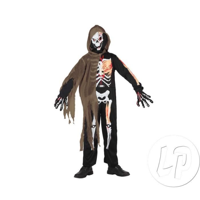 Детский костюм скелета в вуали - Размер 5-6 лет - Костюм на Хэллоуин - Маска в комплекте - Руки скелета