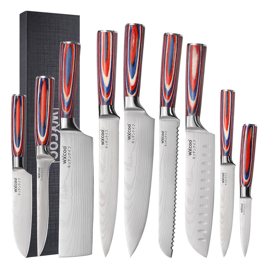 5Cr15MOV Нержавеющая сталь Нож шеф-повара тесак Дамасский узор Кухонный нож Набор японских ножей Сантоку Инструмент для разделки
