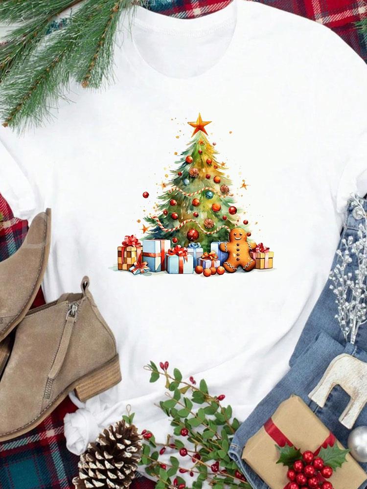 (Азиатский размер) милый тренд 90-х Новогодний фестиваль Женский принт Праздничная футболка Топ Счастливого Рождества Повседневная женская футболка с коротким рукавом Мода Графические футболки