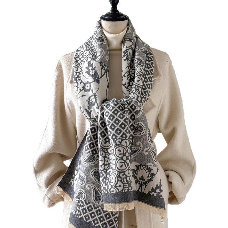 Шарф из искусственного кашемира двойного назначения, теплый для помещения с кондиционером, модная шаль с текстурой кешью, осенне-зимний утолщенный теплый шарф