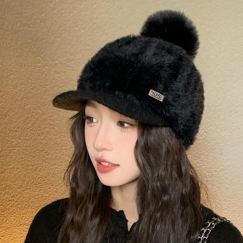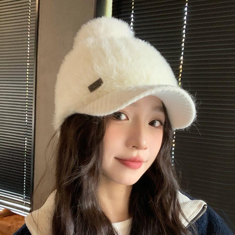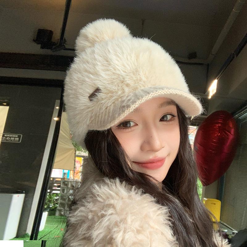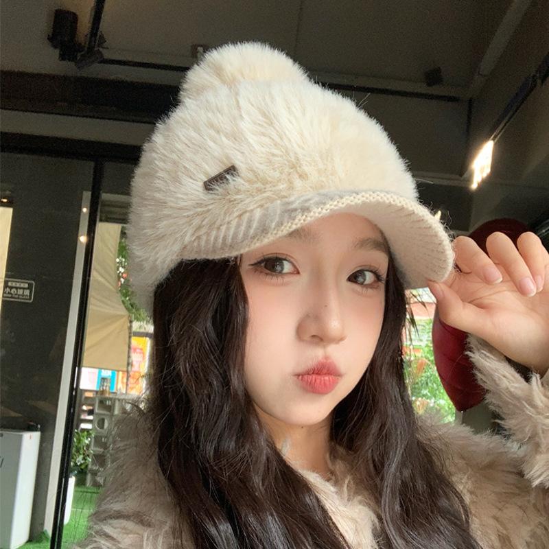 Корейская милая и универсальная вязаная бейсболка с плюшем, повседневная шапка, подчеркивающая лицо, маленькая теплая шапка, уличная ветрозащитная шапка для защиты ушей от холода